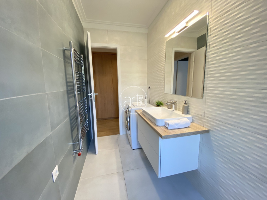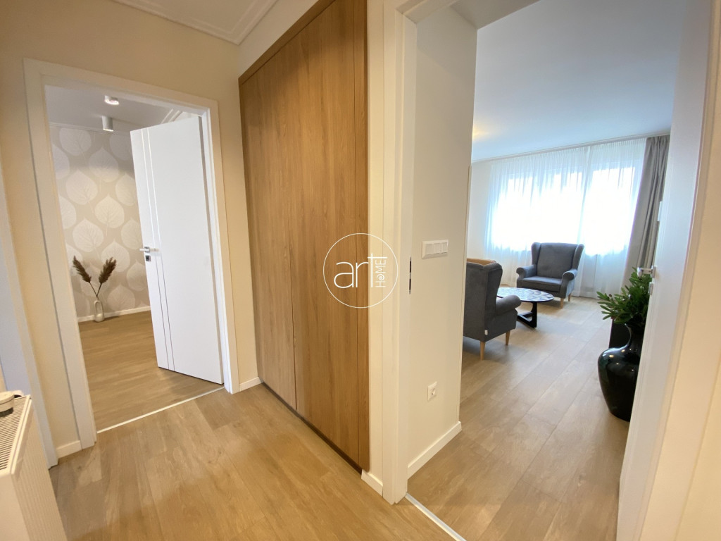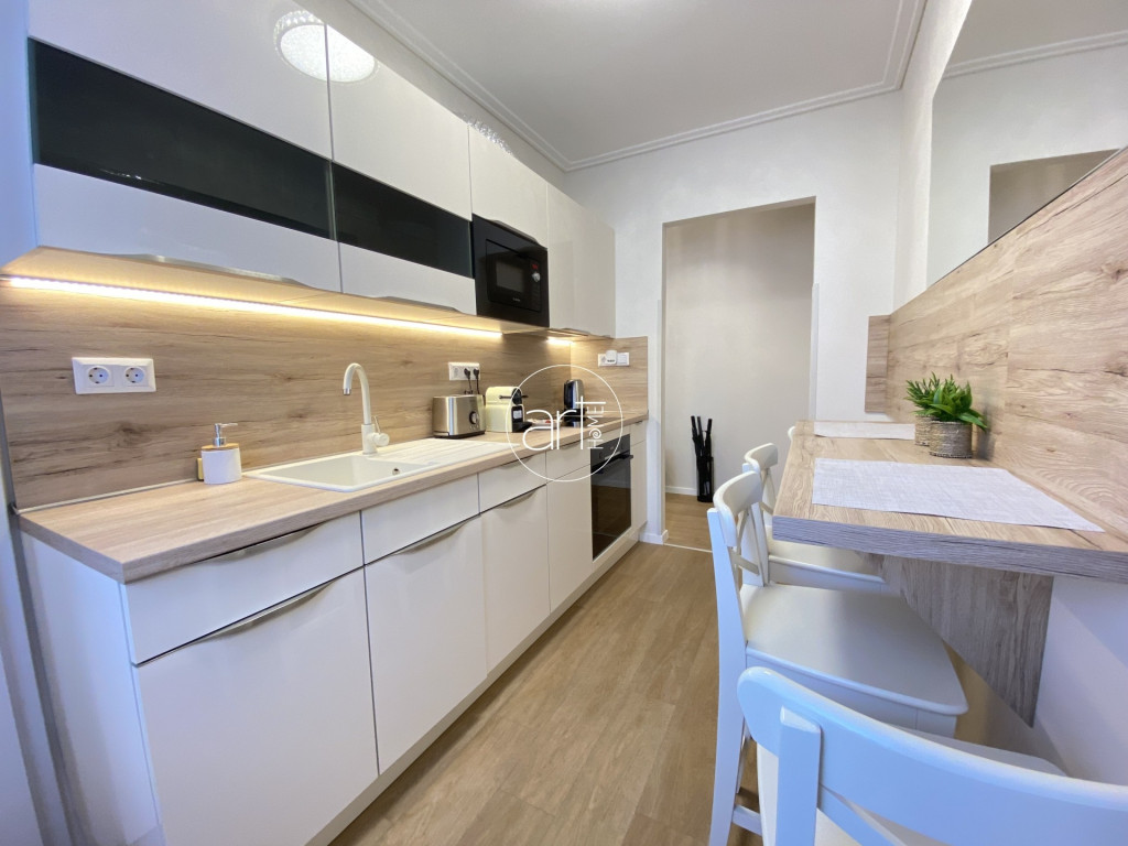 Az elrendezése kifejezetten praktikus, az előszobából nyíló külön WC kényelmes megoldás vendégek fogadásakor, a tágas, tusolós fürdőszoba jól szeparált, a külön konyha kamrával igazi ritkaság a belvárosban. A belső, csendes udvarra néző hálószoba beépített szekrényekkel rendelkezik, míg a hatalmas, világos nappali a lakás igazi éke – akár elegáns otthonként, akár reprezentatív kiadás esetén is kiváló.