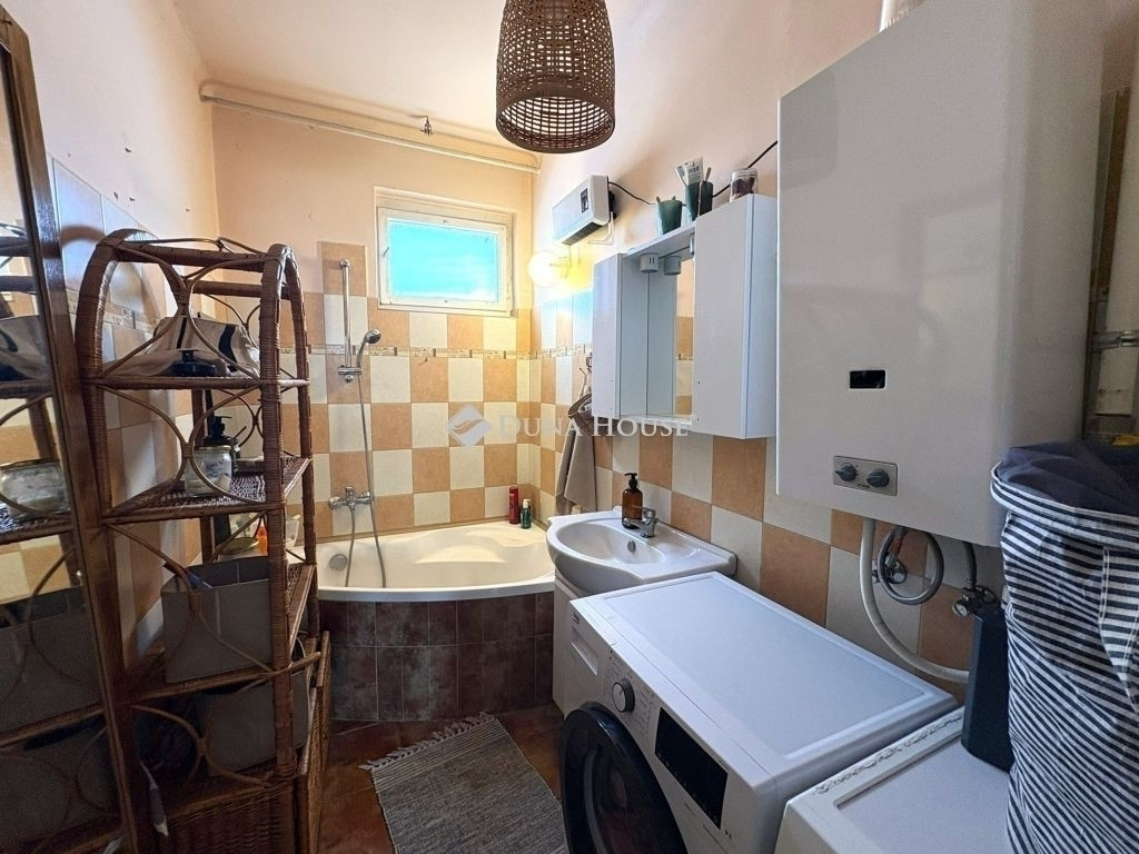A két lakószoba klímával felszerelt, délkeleti tájolású, világos. A felújított konyha ablakából szép kilátás nyílik a Szent István téri víztoronyra. A fürdőszoba igényesen kialakított, sarokkáddal felszerelt.