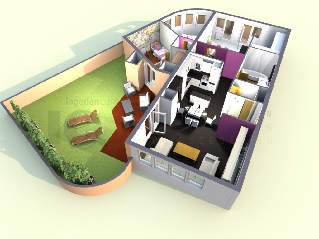 • Nappali + konyha + étkező + 3 hálószoba + gardrób