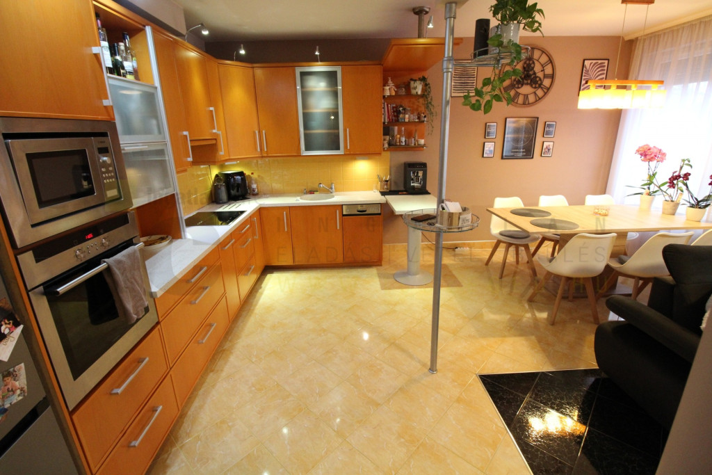 Családok számára ideális méretű és elosztású 88 m2-es lakás központi tere a tágas amerikai konyhás nappali. Ezen túl van még 3 hálószoba (2+1 félszoba), közlekedő, zuhanyzóval, káddal és WC-vel is rendelkező fürdőszoba, valamint háztartási helyiség WC-vel. A nappalit két szobából is megközelíthető, igazán jól kihasználható 6 m2-es fedett terasz egészíti ki, melyet kitekerhető napellenző is véd a melegtől. Konyhájában beépített sütő, mosogatógép, elektromos főzőlap, pára elszívó.