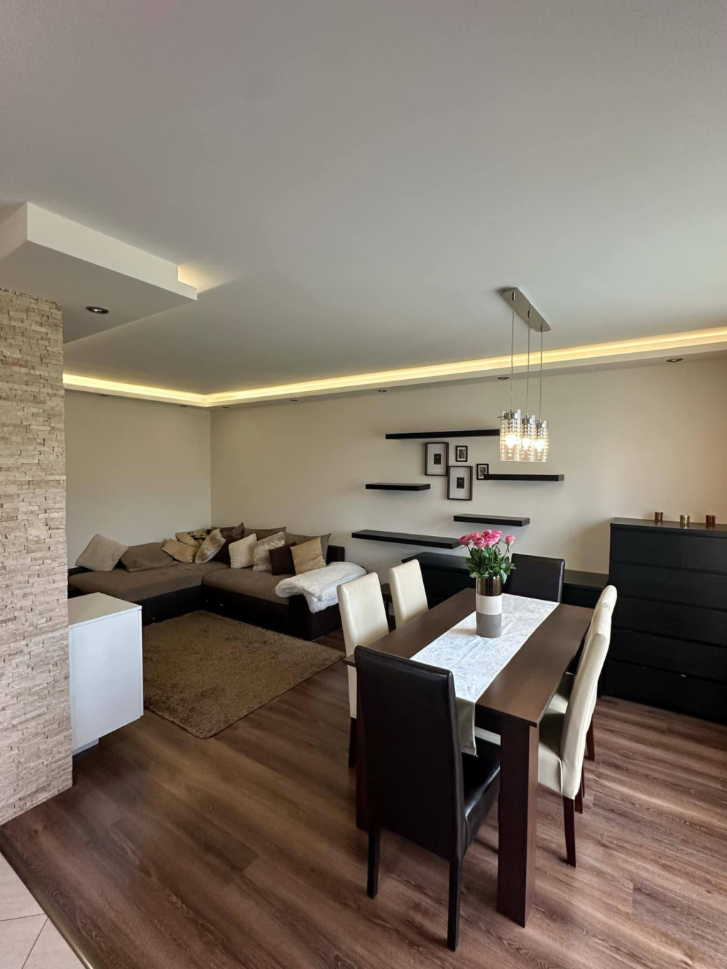 A lakás hangulata már az első pillanatban magával ragad: tágas amerikai konyhás nappali, világos terek, stílusos egyedi gyártású modern bútorok (a vételár részét képezik!), letisztult dizájn és praktikus megoldások.