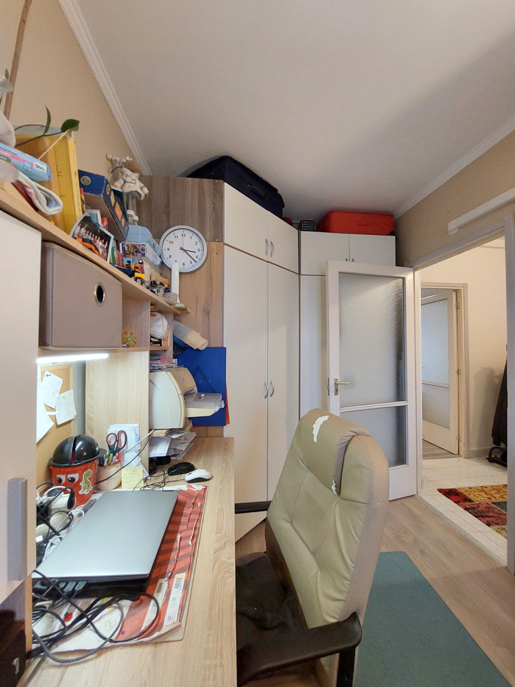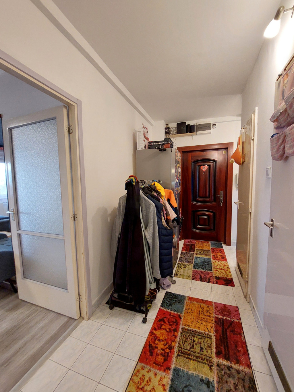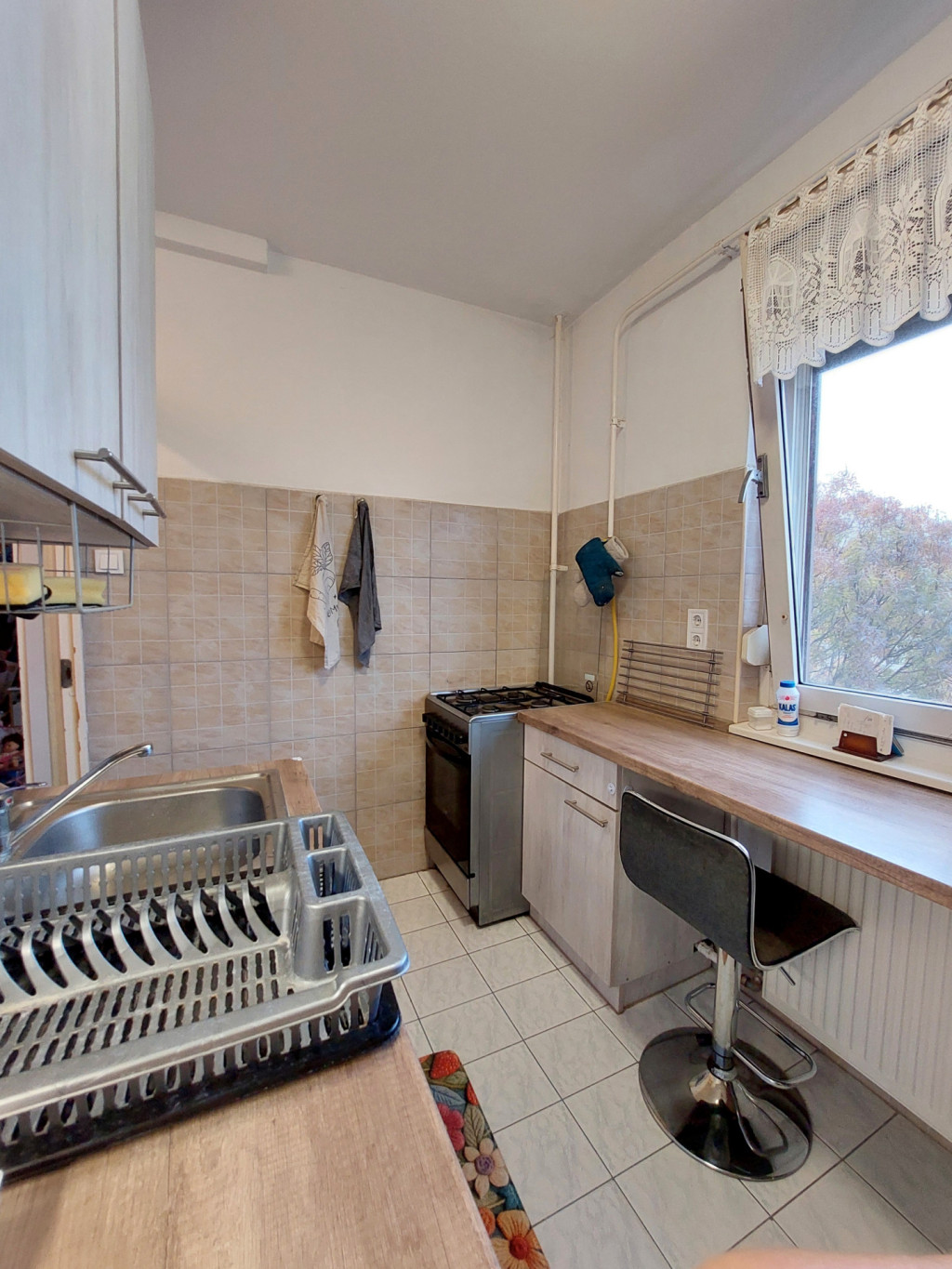 - Felújított burkolatok – a szobákban laminált parketta ad meleg hatást, míg a konyhában, előszobában és fürdőben járólap található, ami könnyen tisztítható és tartós.