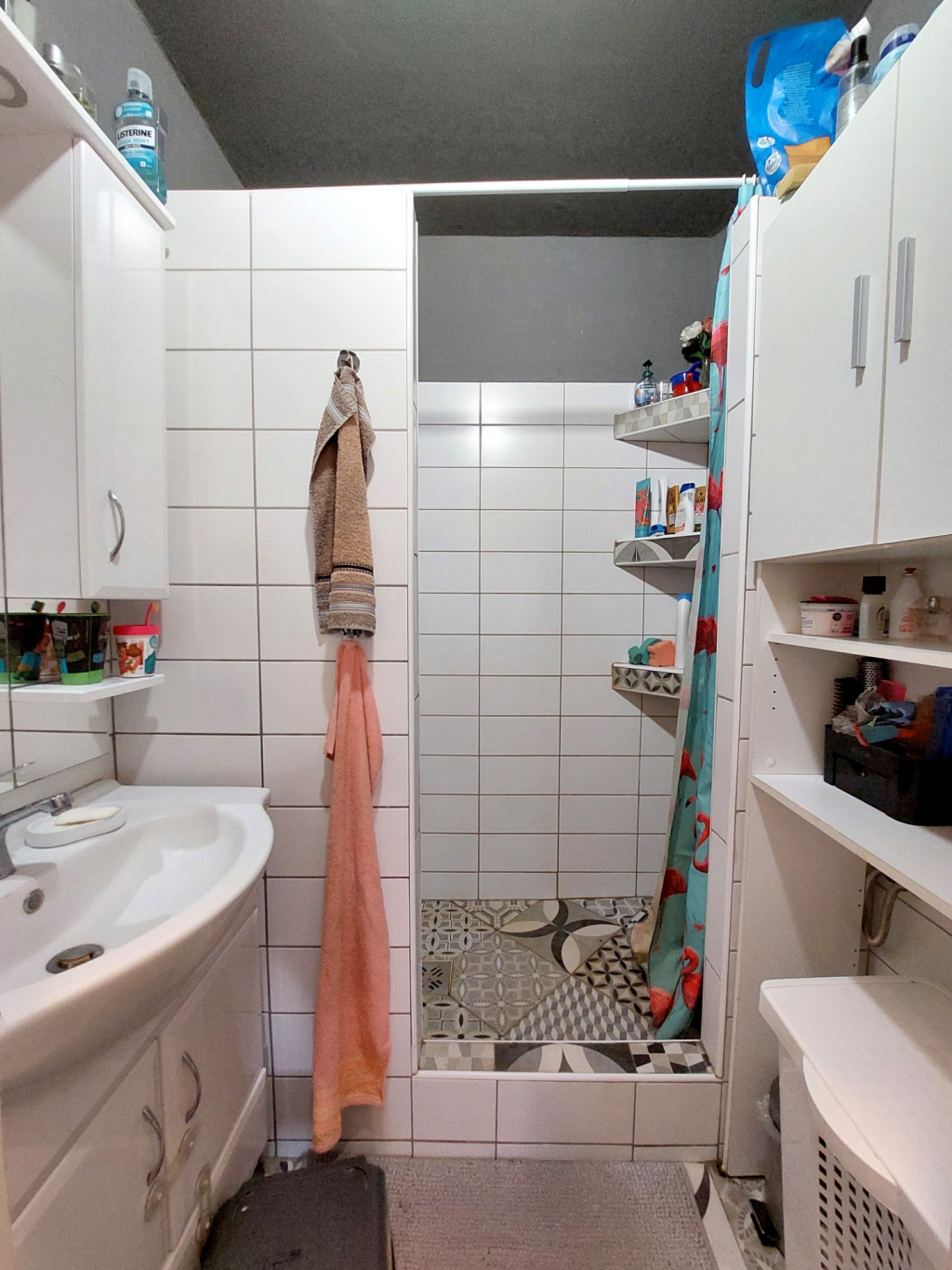 - Zuhanyzós, átalakított fürdő – a modern fürdőszoba helytakarékos kialakítású, igényes burkolatokkal, a mindennapi kényelmet szolgálva.