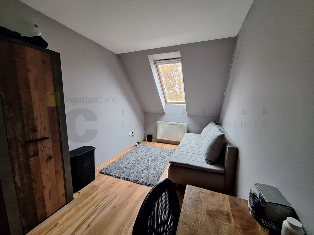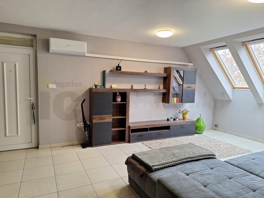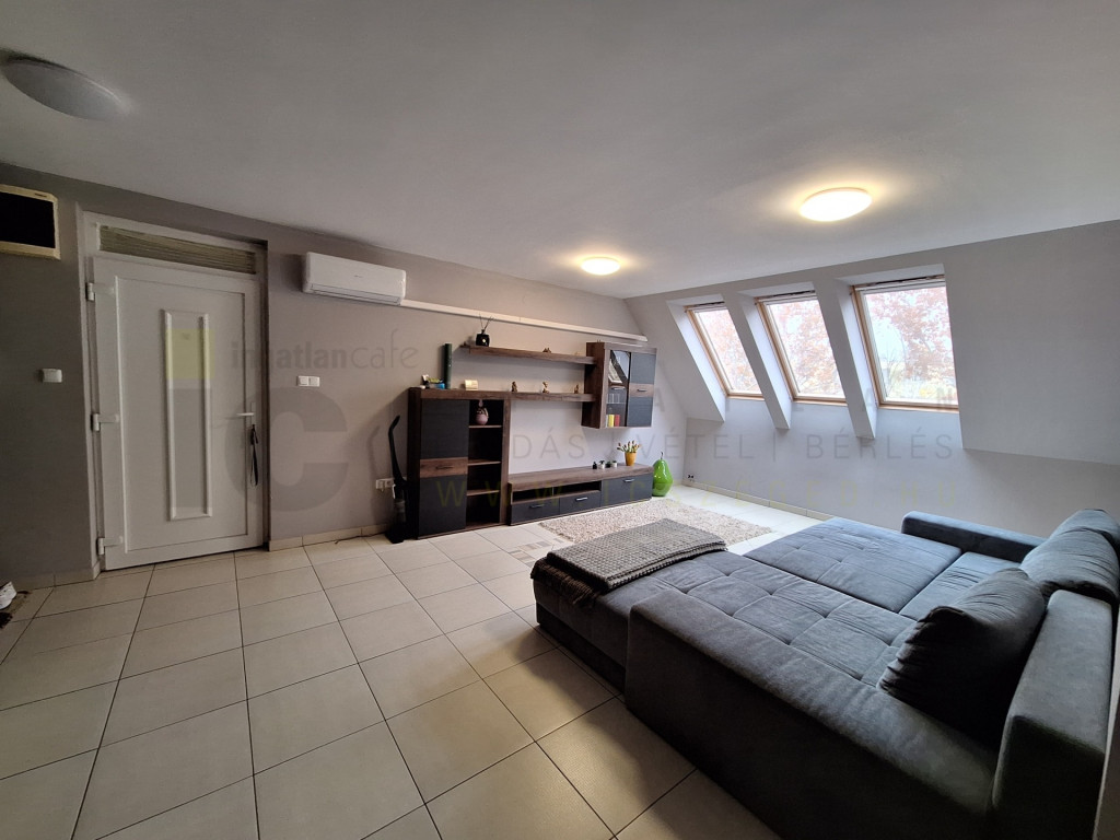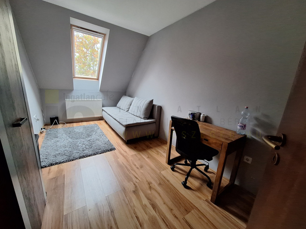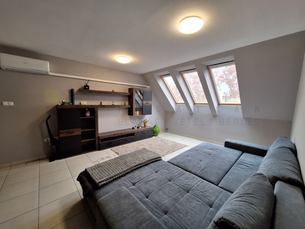 Szegeden, a József A. sgt. eladó egy 2008-ban épült társasház 4. emeletén lévő, szép állapotban lévő, nappali + 2 szobás, tetőtéri lakása, melynek netto alapterülete 60,47 m2. A lakás nagyon jó elosztású, minden szoba külön bejáratú. A lakásba belépve egy tágas, amerikai konyhás nappali fogad, melyben egy kis előszoba fal ad lehetőséget a kabátok és cipők lerakására. A konyhabútor újszerű, modern, háztartási gépekkel felszerelt. A kazán is itt kapott helyet, beépítve a konyhabútorba. A fűtés a nappaliban padlófűtés, a szobákban radiátorok vannak. A nappali nagyon világos, napfényes, kényelmesen elfér benne a nappali berendezése, az étkező asztal és a konyhabútor is. A két hálószoba egymás mellett van, kb hasonló méretűek. A fürdőszoba is tágas, sarokkáddal felszerelt, itt kapott helyet a wc is. A lakás klimatizált, a nappaliban szerelték fel a klímát. A nappaliban hidegburkolat van, a szobákban szép laminált padló. Igény esetén a lakás a teljes bútorzattal megvásárolható. A lakás nagyon jó helyen van, az infrastruktúrája kiváló, közelben több közlekedési lehetőség és bevásárlási lehetőség is adott. A lakáshoz tartozik egy udvari beálló, melyet a lakással együtt kíván értékesíteni a tulajdonos. Ennek irányára 4 M Ft. Az ingatlan kiváló választás saját otthonnak, akár családoknak, akár egyetemistáknak, de befektetésnek is alkalmas, jó elhelyezkedése és elosztása miatt.