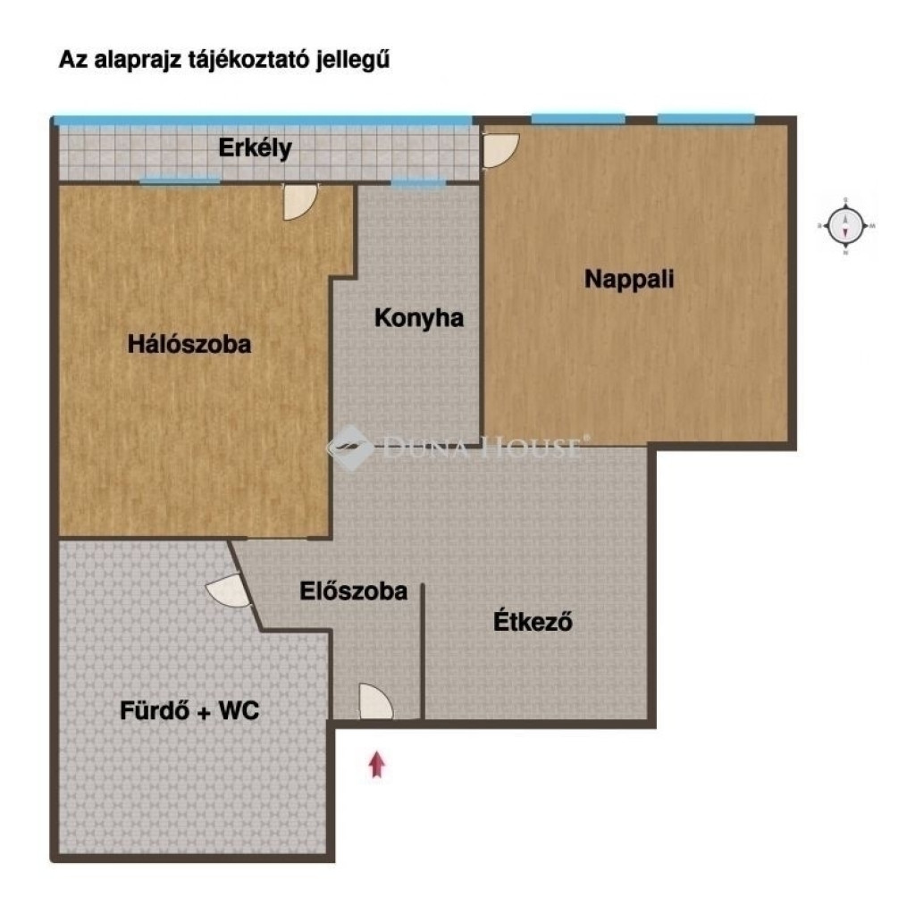 A lakás világos, jól átgondolt alaprajzzal rendelkezik, az erkély pedig mindkét szobából elérhető, ami otthonos, harmonikus hangulatot teremt.