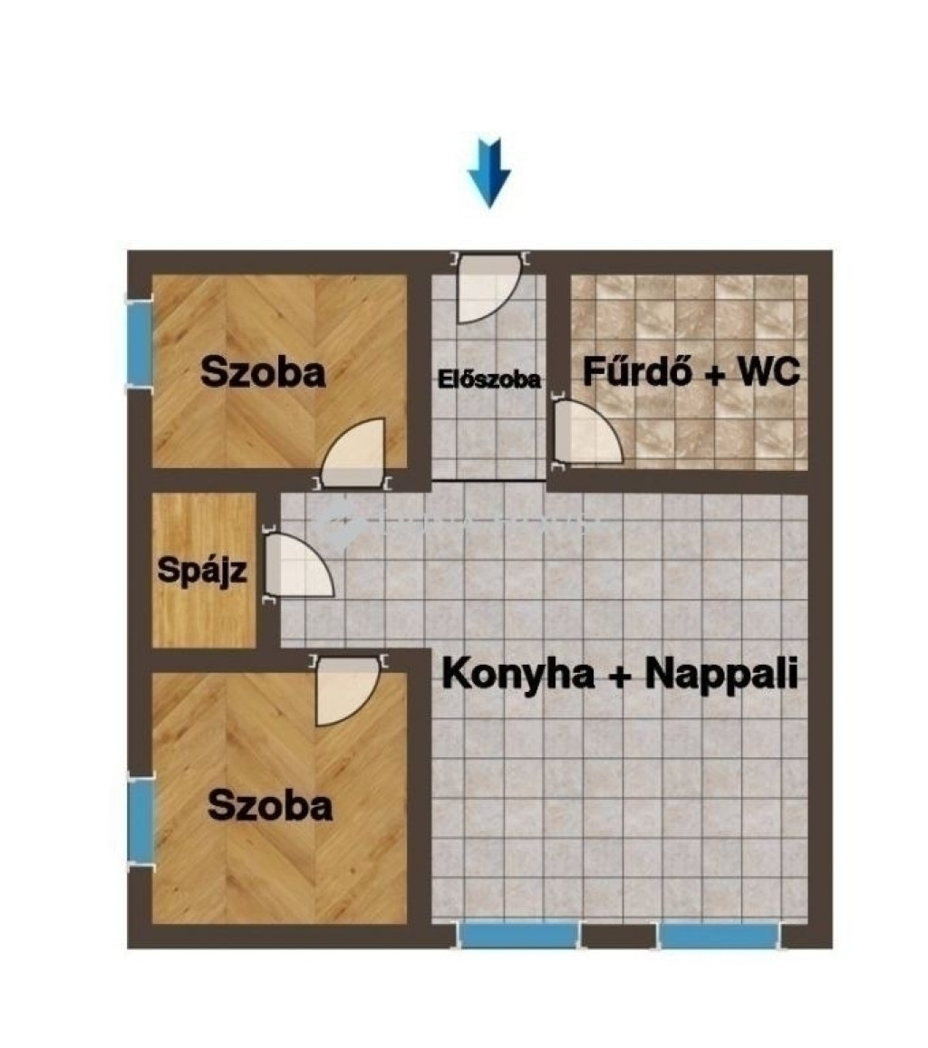 Amerikai konyhás nappali + 2 külön nyíló szoba