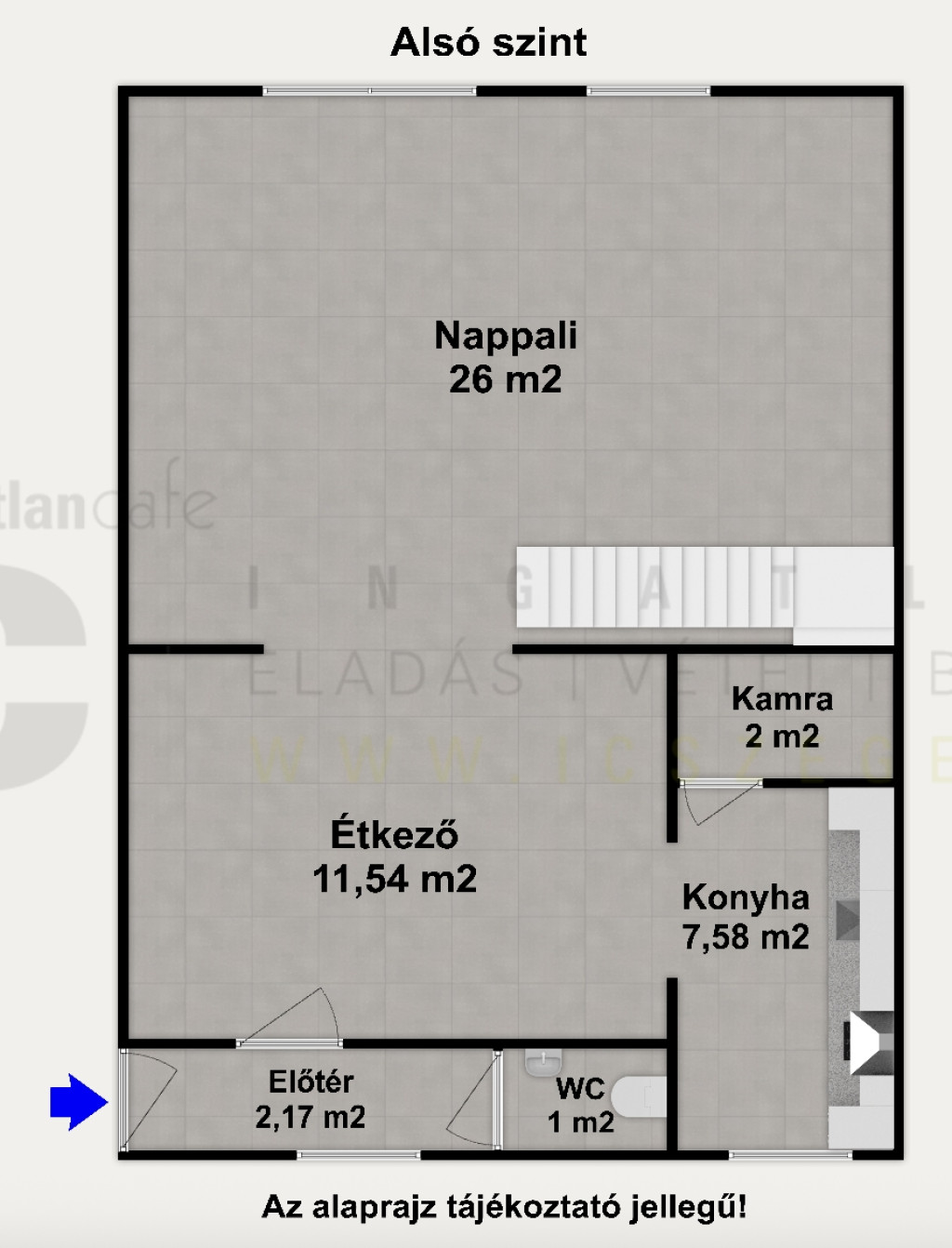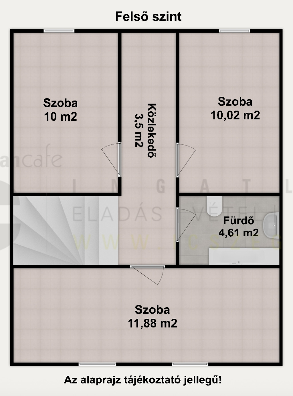 - az ingatlan belső kétszintes, összesen nettó 90,3 m2 alapterületű