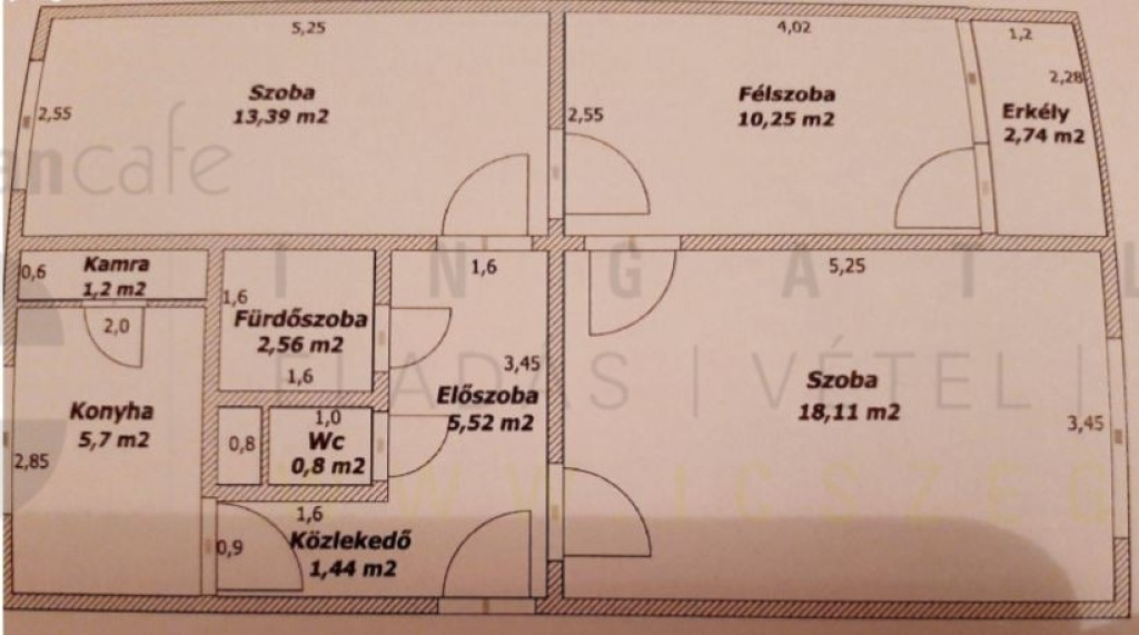 Három szoba, előszoba-folyosó, konyha, kamra, fürdőszoba és külön WC alkotja. A belső tereket jól kihasználható loggia egészíti ki.