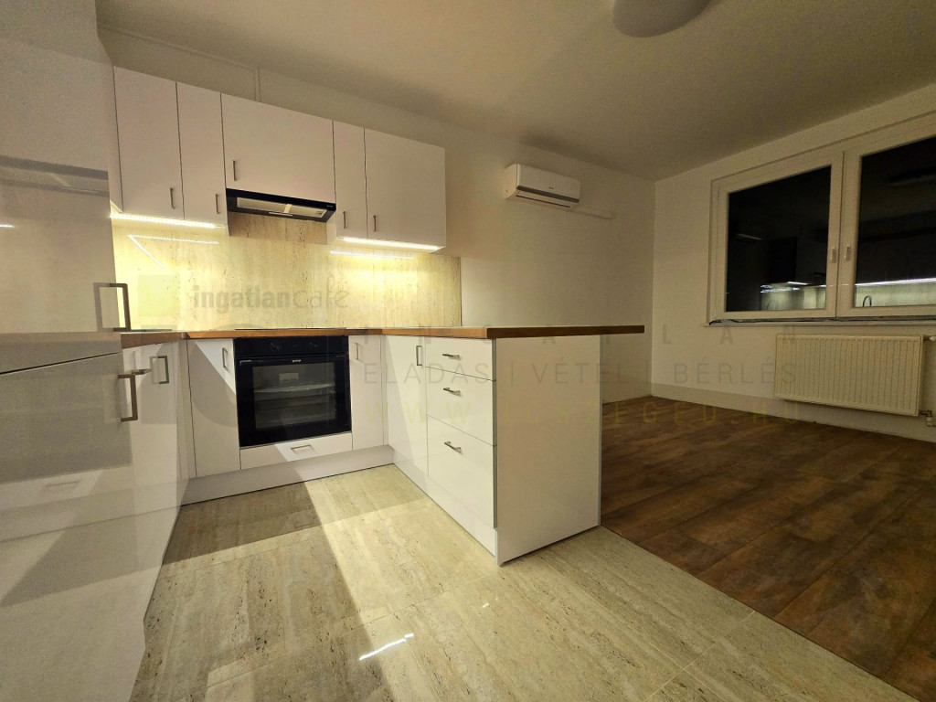 Szeged, Makkosházán, a kedvelt és csendes Lomnici utcában eladó egy teljesen felújított és átépített, 60 m2-es, amerikai konyhás nappali+3 szobás lakás.