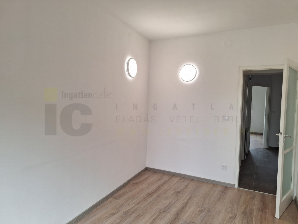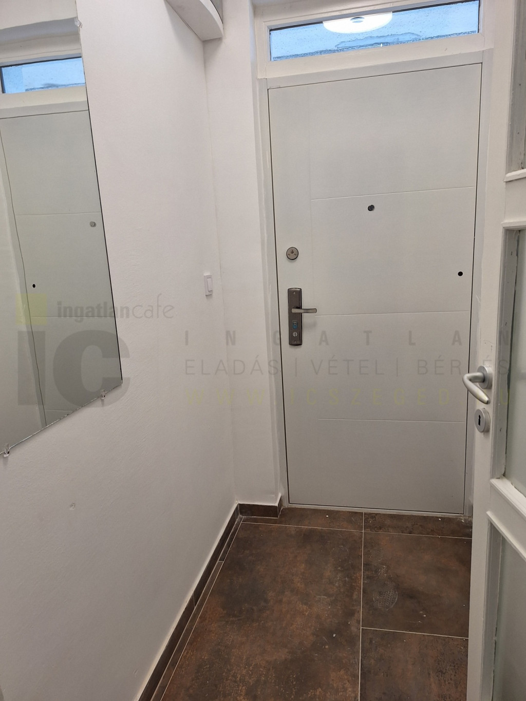 Szegeden, a Nemestakács utcában, a belvároshoz közel, mégis csendes utcában eladó, egy 1996-ban épült társasház 1. emeleti lakása. A lakás alapterülete 68 m2-melyben egy nagy nappali, egy háló, egy tágas étkező, egy konyha, egy fürdőszoba és egy külön wc található.A lakást a tulajdonosok felújították, melynek keretében sor került a teljes villanyhálózat korszerűsítésére, a burkolatok cseréjére, és a nyílászárók felújítására is. A fürdőszoba és a wc teljesen új külsőt kapott, itt is kicserélték a szanitereket és a burkolatokat. A fürszobába kádat építettek be, itt található a kombikazán is, mely a fűtést szolgáltatja, radiátorokon keresztül. Az előszobából egyből egy tágas étkezőbe jutunk, innen közelíthető meg a többi helyiség. Itt kényelmesen elfér akár egy nagyobb étkezőasztal is. Kis beugóban kapott helyet a konyha. A hálószoba udvari fekvésű, így biztosítva van a nyugodt pihenés. A nappali szoba nagyon tágas, két francia erkéllyel az utca felé, a jelenlegi tulajdonosok kis üvegezett fallal megtörték a teret, lehetőséget adva a különböző funkciók kialakítására. Így akár egy dolgozó szobát, akár egy pihenő sarkot is ki lehet alakítani a leválasztott térben. A lakás egy függőfolyosóról közelíthető meg, melyben az utolsó lakás, így a folyosó rész akár erkélyként is hasznosítható. Ezt a részt szigetelték, és frissen festették a felújítás során. Innen szép kilátás nyílik a társasház udvarára, ahol kerékpár tárolására is lehetőség van. A lakáshoz tartozik egy utca garázs, melynek mérőórái a lakással együtt vannak, ezért csak együtt vásárolhatóak meg. A garázs is felújításra került, elektromos kapu, hidegburkolat, kulturált belső jellemzi. A garázs irányára 12 M Ft.