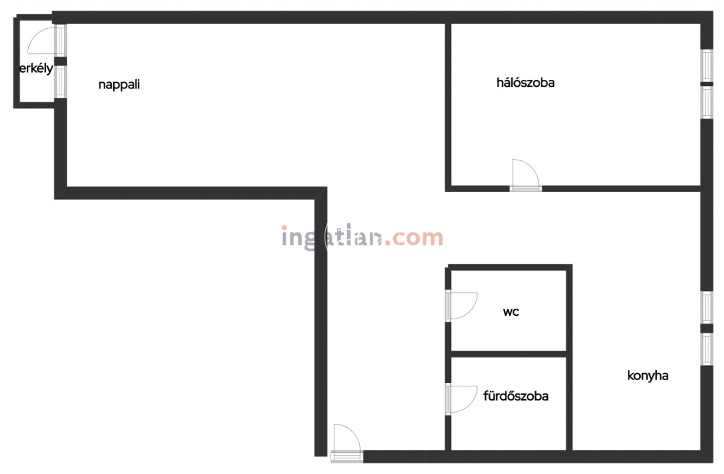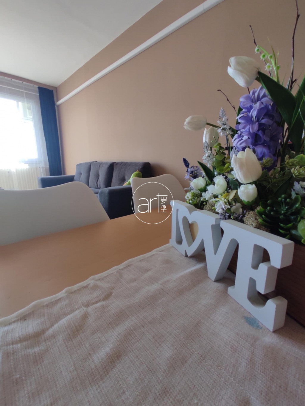 A lakás 55 nm nagyságú, egy nappalival és egy hálószobával rendelkezik, a kádas fürdőszoba és a WC külön helyiségben található. A szobák laminált padlóval borítottak, a vizes helyiségekben a konyhában és a közlekedőben hideg burkolat található.