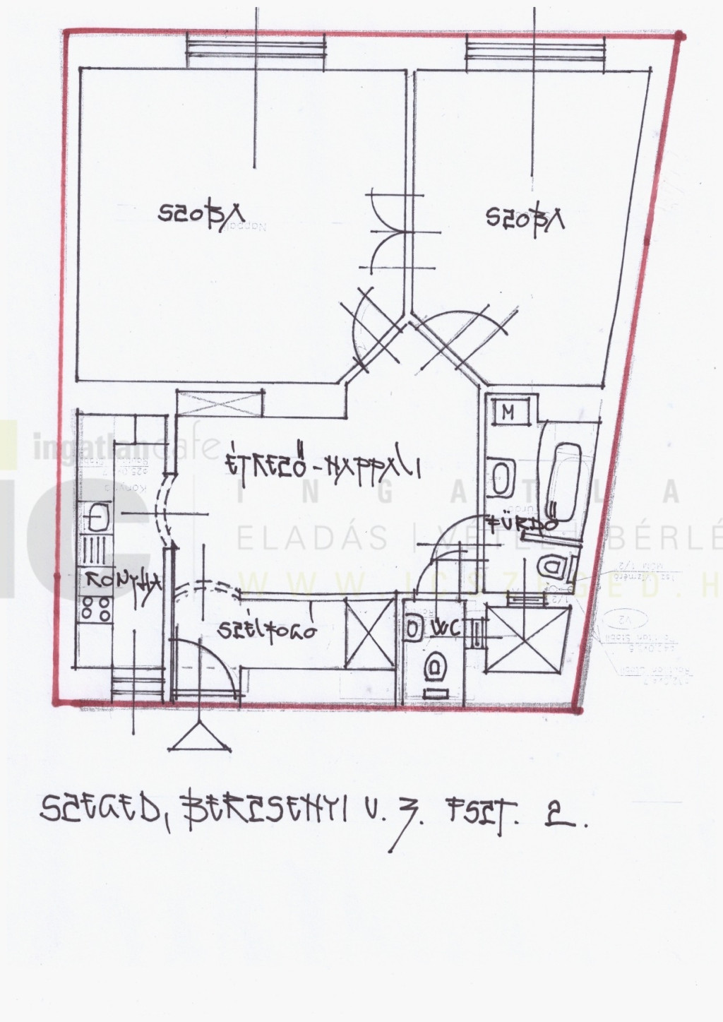 - 2 nagy szoba: konyha/étkező és 2 tágas lakószoba