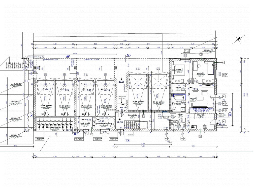 Igény és megegyezés szerint gépkocsibeálló (5,5M Ft/db) és garázs (13M Ft/db) is vásárolható az ingatlanokhoz!