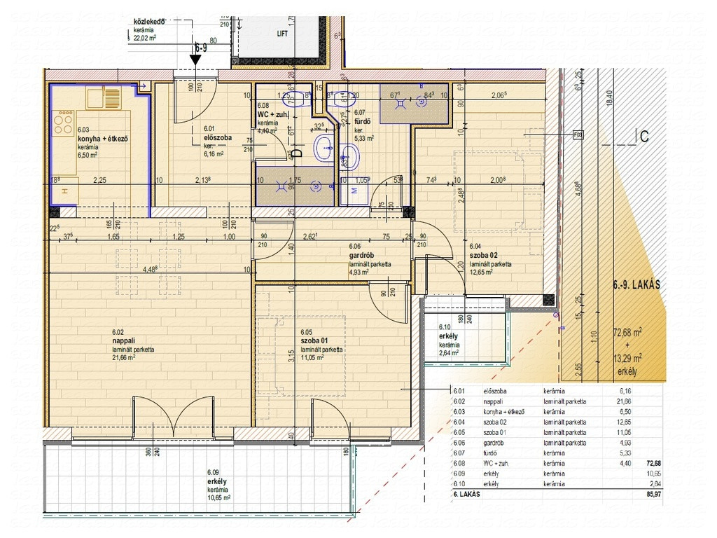 | Alapterület (m²): 80 m² alapterületű | Szobák száma: 3 szobás | Hány emeletes épületben: 4 emeletes épületben | Belmagasság (cm): 265 cm belmagasságú | Falazat: téglafalazatú | Homlokzat burkolata: homlokzat új, újszerű, homlokzat hőszigetelt | Ablakok: műanyag ablakok, hőszigetelt ablakok, hangszigetelt ablakok, új, újszerű ablakok | Ajtók: új, újszerű ajtók | Padlóburkolatok: kerámialap padlózatú, laminált parkettás, újszerű padlóburkolat | Épület állapota: új építésű épület, energiatakarékos világítású | Lakás állapota: új elektromos vezetékek, új építésű lakás | Küllem, stílus: ultramodern | Szobák és helységek: nappalival, több hálószobával | Fürdőszoba, WC: több fürdőszobás, új, újszerű fürdőszoba | Konyha, ebédlő: amerikai konyhás, új, újszerű konyha | Terasz, kert, udvar: saját terasz, erkély, balkon, loggia | Közlekedés az épületben: akadálymentesített, személyfelvonó van, nagysebességű lift | Fűtés típusai: egyedi fűtésű | Hűtés-fűtés hőleadók: padlófűtés, helység. szabályozható, mennyezethűtés | Fűtés, hőtermelők: hőszivattyús kazán | Tömegközlekedés: buszmegálló közelben | Kilátás: udvarra néző | Lokáció: belváros közelében | Besorolás: lakás | Fenntartás költségei: alacsony fűtés költség | Biztonságtechnika: kaputelefon | Energiahtékonyság: zöldenergia felhasználás |