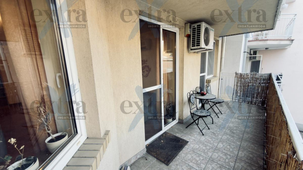A lakás egyik igazi ékköve a nagy, 8 m²-es terasz, amely az udvarra néz – ideális reggeli kávézáshoz, esti borozáshoz vagy egy kis kikapcsolódáshoz.