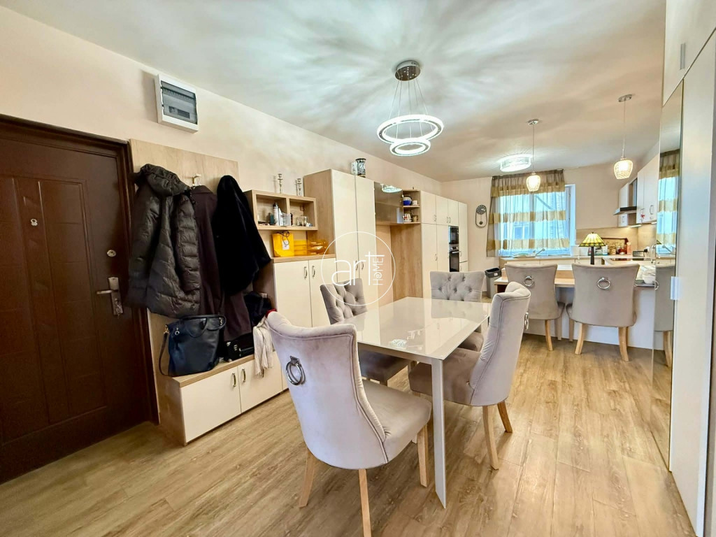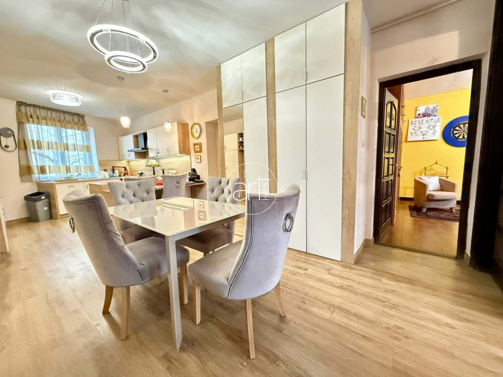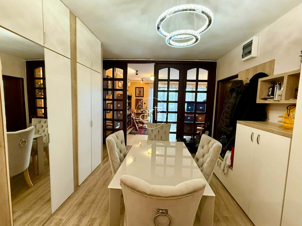 Az előszoba, konyha-étkező, valamint a fürdőszoba stílusos, ízléssel megálmodott és remekül, finoman kivitelezett, teljes felújításon esett át pár évvel ezelőtt.