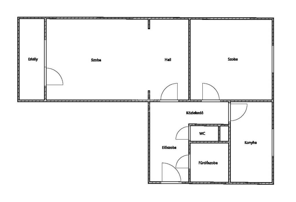 Elrendezés: 2 szoba + hall, konyha, fürdőszoba, külön WC, erkély