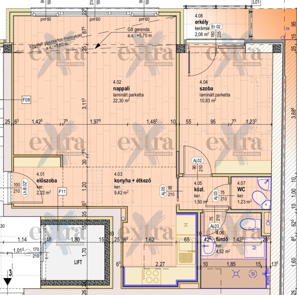 - a lakás alapterület: 53,06 m2 (52,02 m2+2,08 m2 erkély).