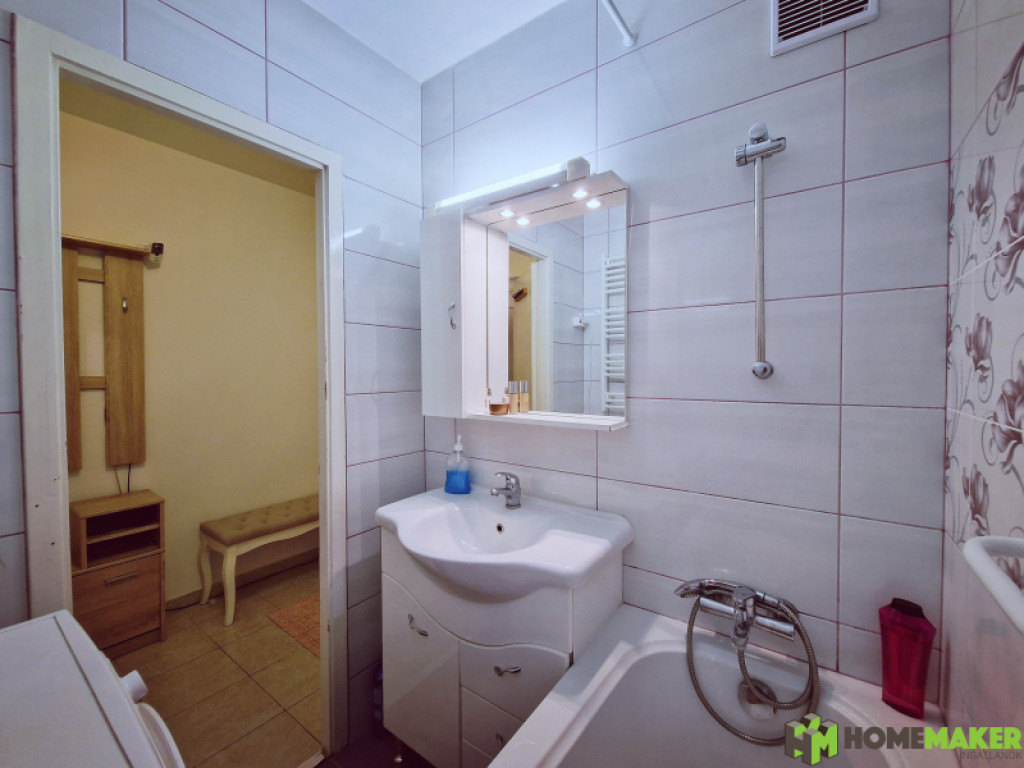 - kádas fürdőszoba jó minőségű szaniterekkel, burkolatokkal + külön WC