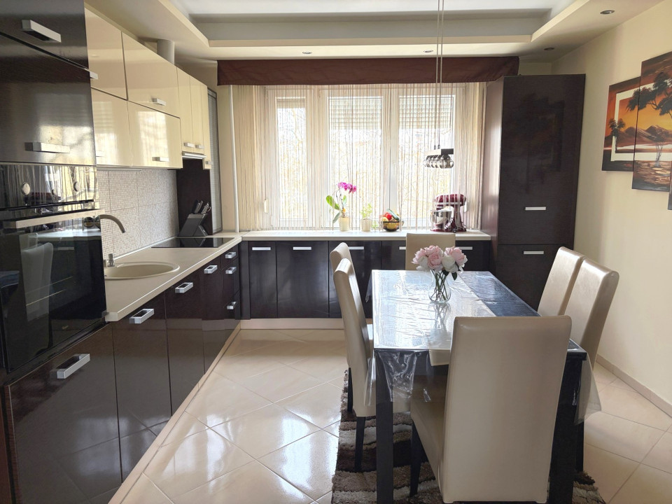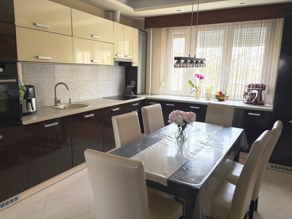 - A rendkívül igényes beépített bútorok, a vételár részét képezik. A konyhában a hűtőszekrény, a mosogatógép is a beépített berendezések közé tartozik, a kis mélyhűtő pedig megegyezés tárgyát képezi. A konyha szellőzésének kivezetését is megoldották a külső homlokzaton keresztül.
