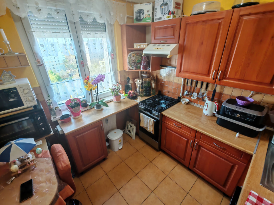 Az ingatlan egy 10 szintes kifizetett panelprogramos liftes akadálymentes ház 10. emeletén található. A bejárati és a belső ajtók cseréje is megtörtént, illetve az elektromos hálózat is részben felújított! A fűtésről táv hő gondoskodik lap radiátoros hő leadókkal egyedi méréssel! Az ablakok korszerű műanyag hő és hangszigetelt nyílászárókra lettek cserélve a panelprogram keretein belül, redőnnyel szúnyoghálóval szerelve! A szobák laminált parkettás borításúak, a falai festettek. A fürdőszoba kádas kialakítású, hidegburkolatos a WC- külön helyiségben került kialakításra. Az előtérben és a közlekedőben a tágas térnek köszönhetően helyet kapott egy nagy méretű a beépített szekrény. A konyha tágas és világos nagy pakolófelületű bútort kapott. A ház jó esztétikai és műszaki állapotban van, lépcsőháza tiszta és rendezett, a tető is felújított, jó lakóközösség jellemzi! Ideális lehet fiatal és idősebb korosztály számára is, továbbá befektetésnek is szuper döntés! A környék infrastruktúrája hibátlan, boltok, tömegközlekedés, étterem 1 percen belül! Jöjjön el nézze meg! A parkolás a ház előtt ingyenesen megoldható! Az ingatlanhoz közös tároló is tartozik!