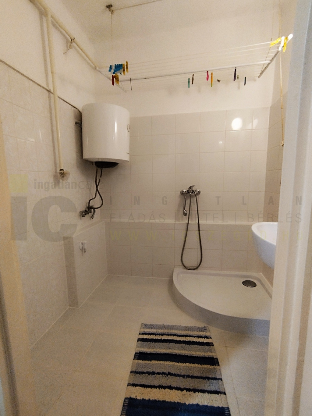A lakásban konvektoros fűtés van kialakítva jelenleg. A fürdőszoba és a WC egy légtérben található. Pér éve a tulajdonosok felújították, és zuhanytálcát építettek be, a burkolatokat lecserélték.