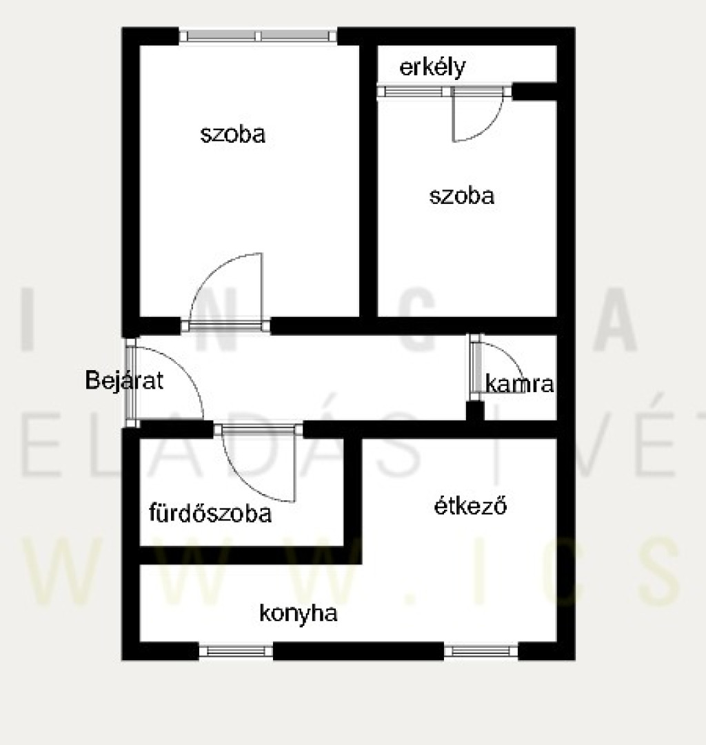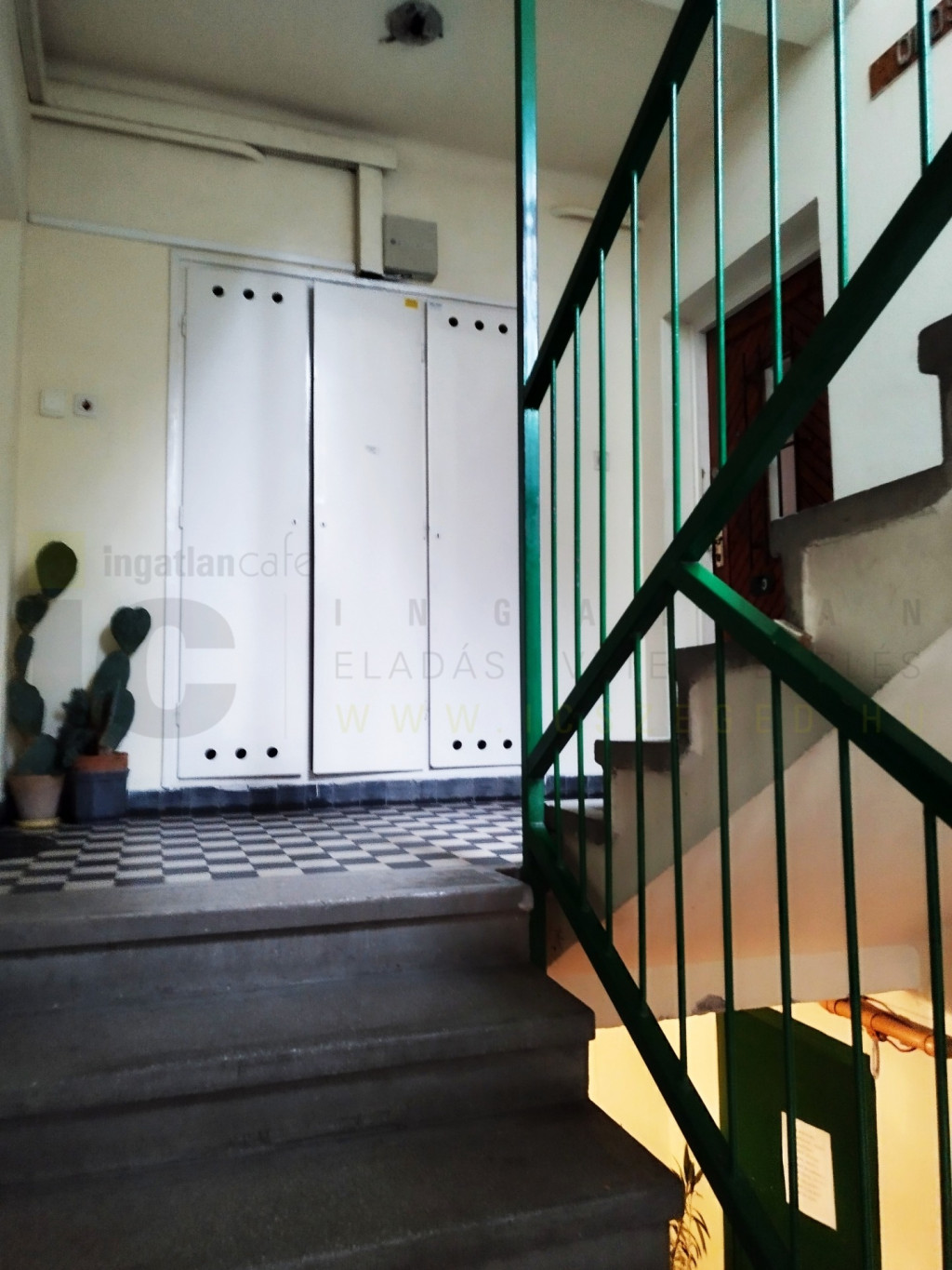 A magasföldszinten található ingatlan 2 szobából, egy nagy étkezőkonyhából, fürdőszobából és kamrából áll. Az egyik szobának van egy 3 m2-es erkélye az utcafront felé.