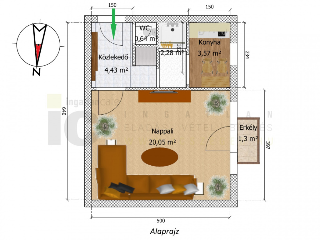 • Lakótér: 30 m² + 1,5 m² erkély