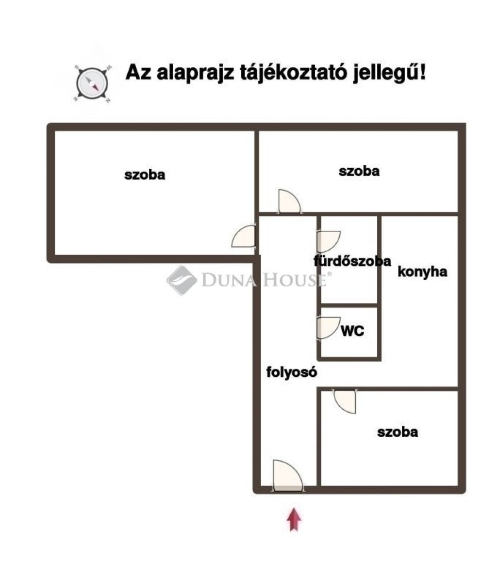 Az ingatlan három külön nyíló szobával rendelkezik, emellett külön fürdőszoba és WC szolgálja a kényelmet. A viszonylag tágas folyosón beépített szekrény található, amely ideális megoldást kínál a mindennapi tárolásra.