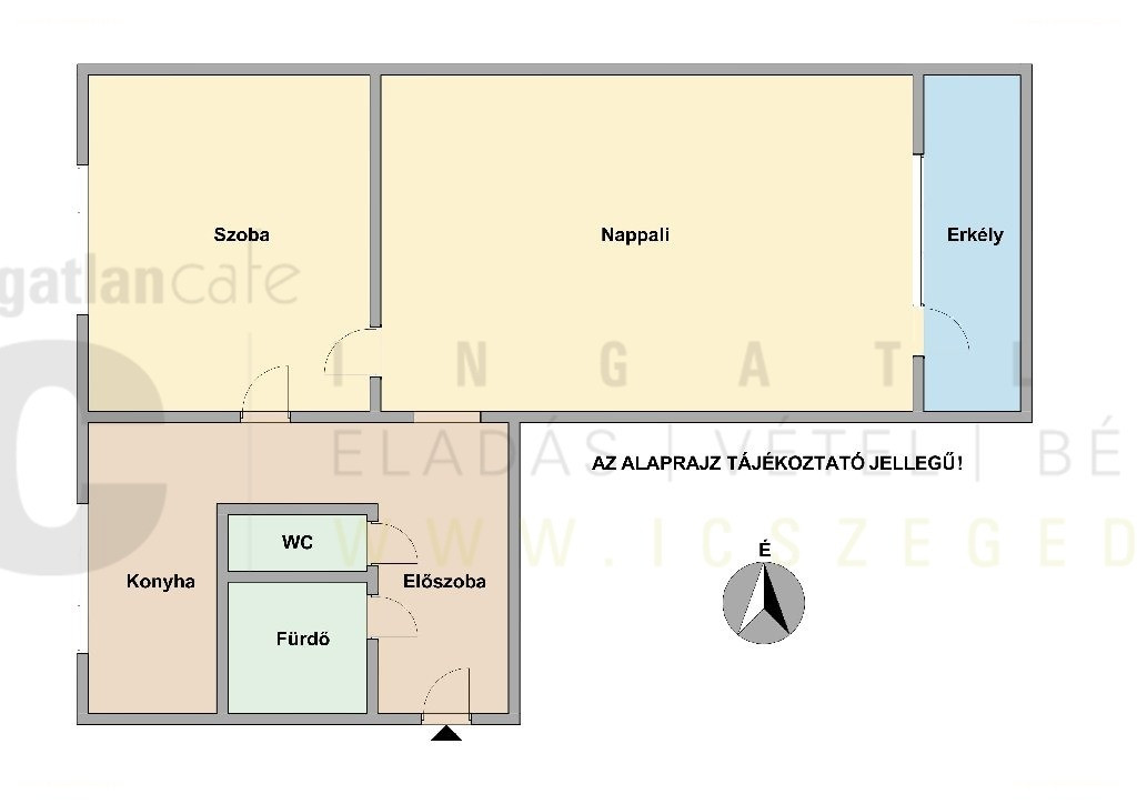 Az 55 m2-es panel lakás központi tere a tágas nappali, mely hall résszel egészül ki. A nappalin kívül hálószoba, előszoba-folyosó, konyha, fürdőszoba és külön WC alkotja. A lakás tereit jól kihasználható, a belső, parkosított területre néző fedett erkély egészíti ki.