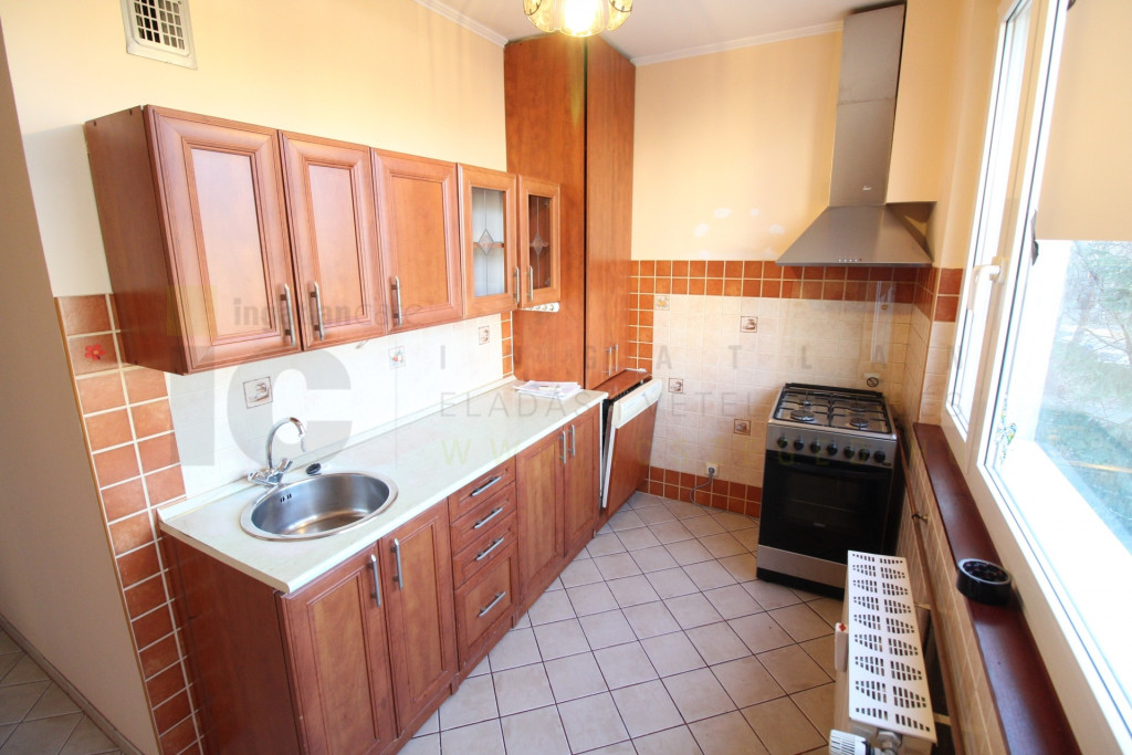 Három külön nyíló szoba, előszoba-folyosó, kihelyezett előtér, konyha, fürdőszoba és külön WC alkotja. Konyhájában beépített mosogatógép található.