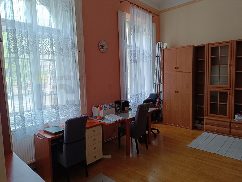 Eladó egy 94 m²-es, kiváló adottságú polgári lakás Szeged abszolút belvárosában. Az ingatlan a Tisza Lajos körút 12. szám alatt, egy rendezett társasház magasföldszintjén található.