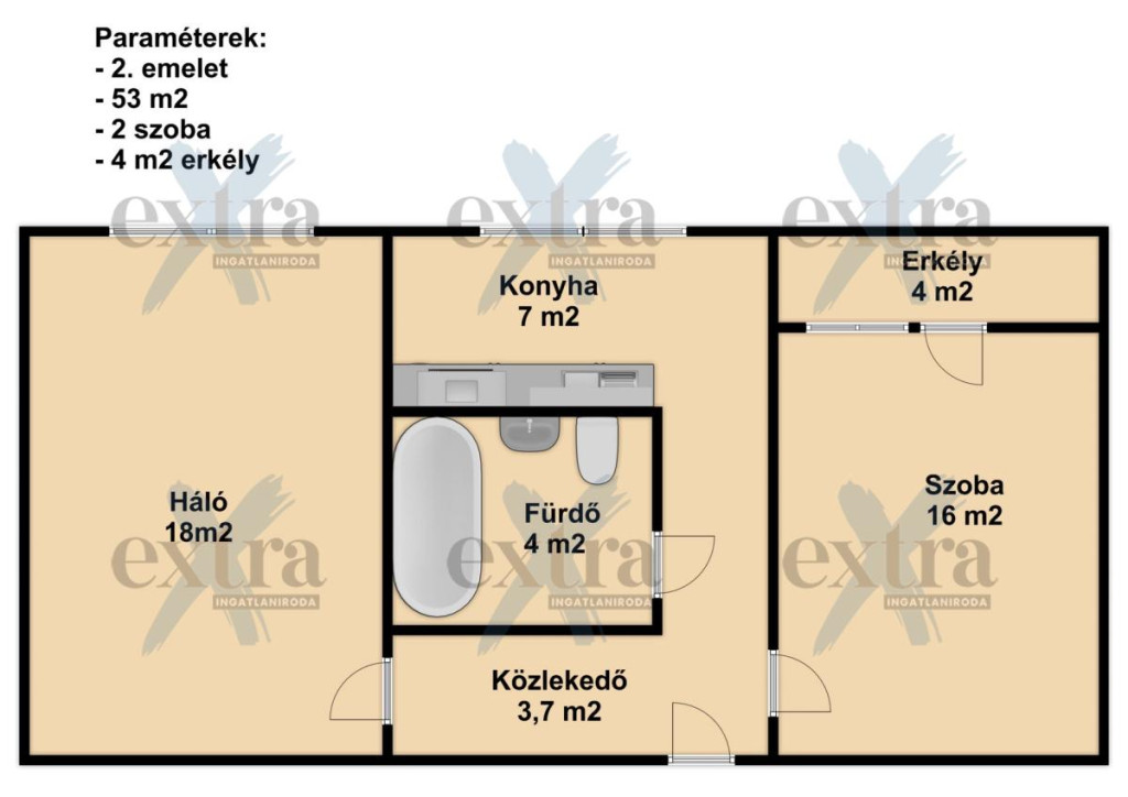 - Alapterület: 53 m2