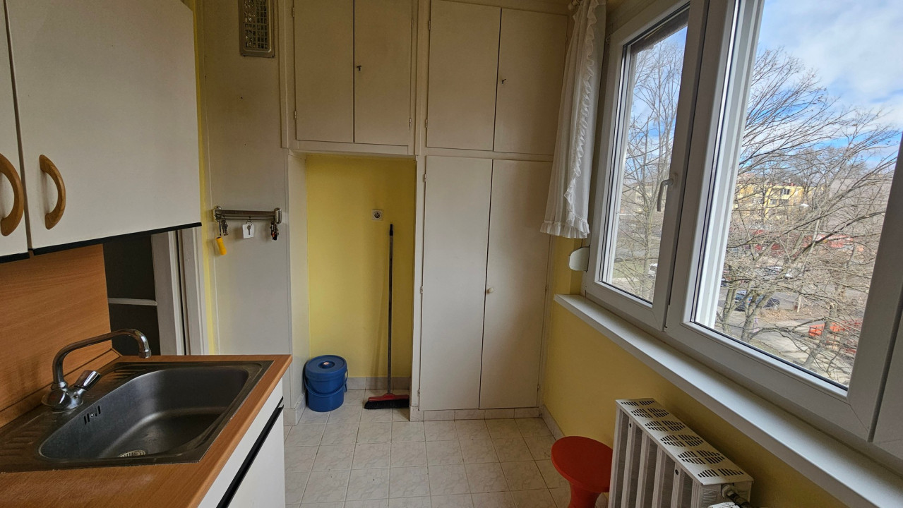 A lakás egy garázsszint + 5 emeletes épület 2. emeletén (3. lakószint) található. Az épület nem vett részt panelprogramban, ugyanakkor a lakásban a külső nyílászárók és a bejárati ajtó már cserélve lettek. Az ablakok redőnyözöttek.
