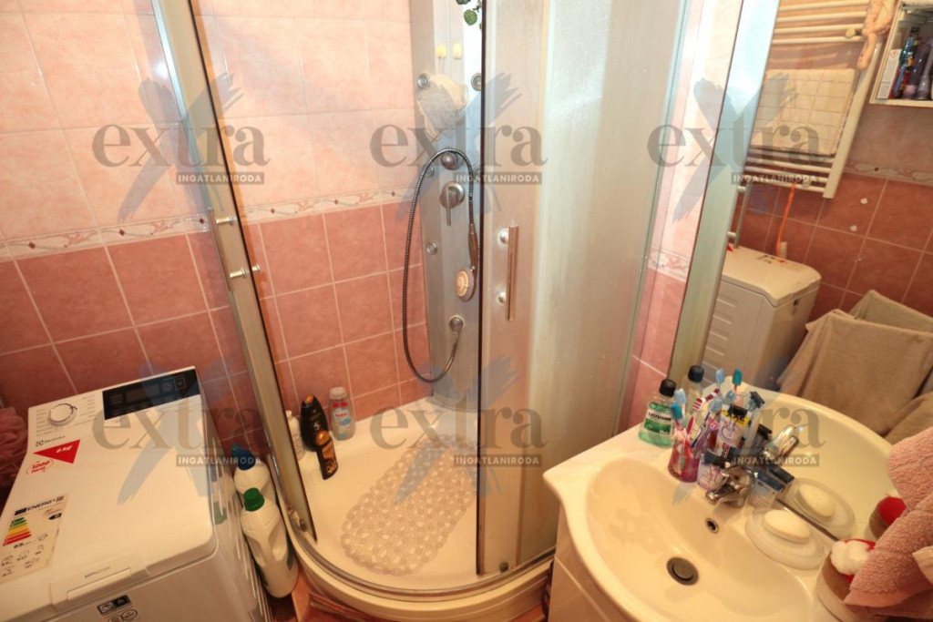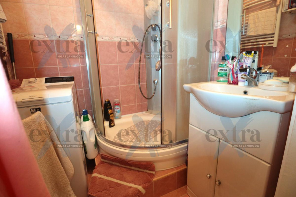 A fürdőszoba modern TUSOLÓVAL lett felszerelve, ami a gyors és kényelmes reggeli készülődést teszi lehetővé. A BURKOLATCSERÉK szintén a felújítás részét képezik, így a modern stílus és a praktikum kéz a kézben járnak ebben az otthonos lakásban.