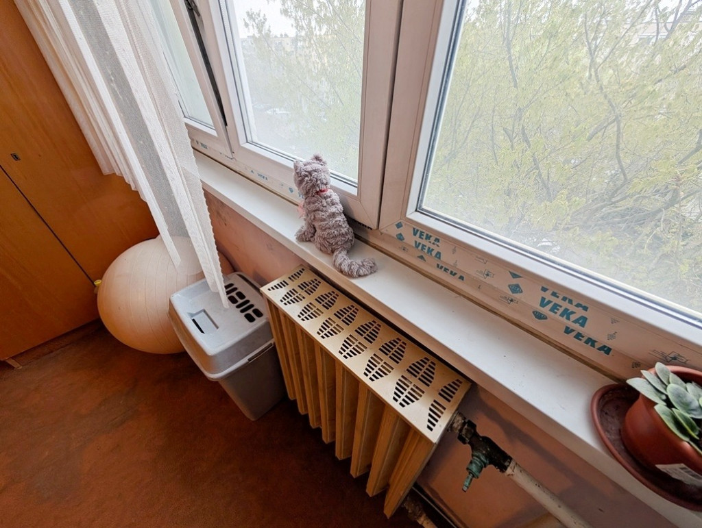 A lakás elosztása praktikus: nappali + 2 külön nyíló hálószoba, konyha, előszoba beépített szekrényekkel, kádas fürdőszoba és külön WC. A szobák körbejárhatók, ami jól alakítható életteret biztosít. Az ablakok zöldre, parkos környezetre néznek, így a lakás világos és kellemes hangulatú.