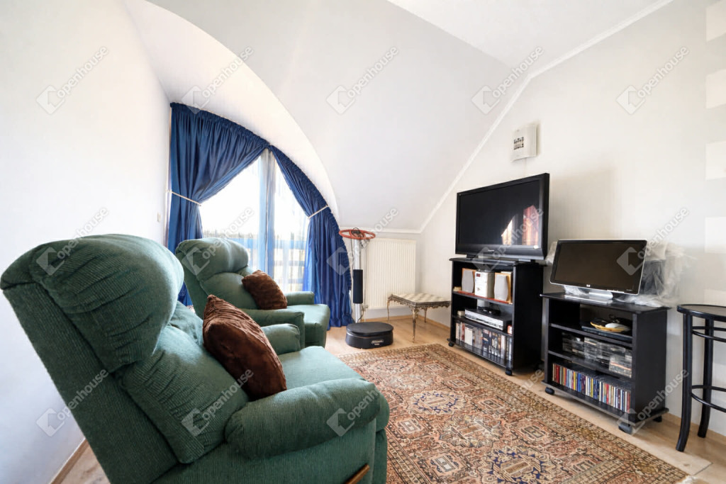 Garázs felett, járható, pakolható helyiség, akár kisebb irodának kialakítható