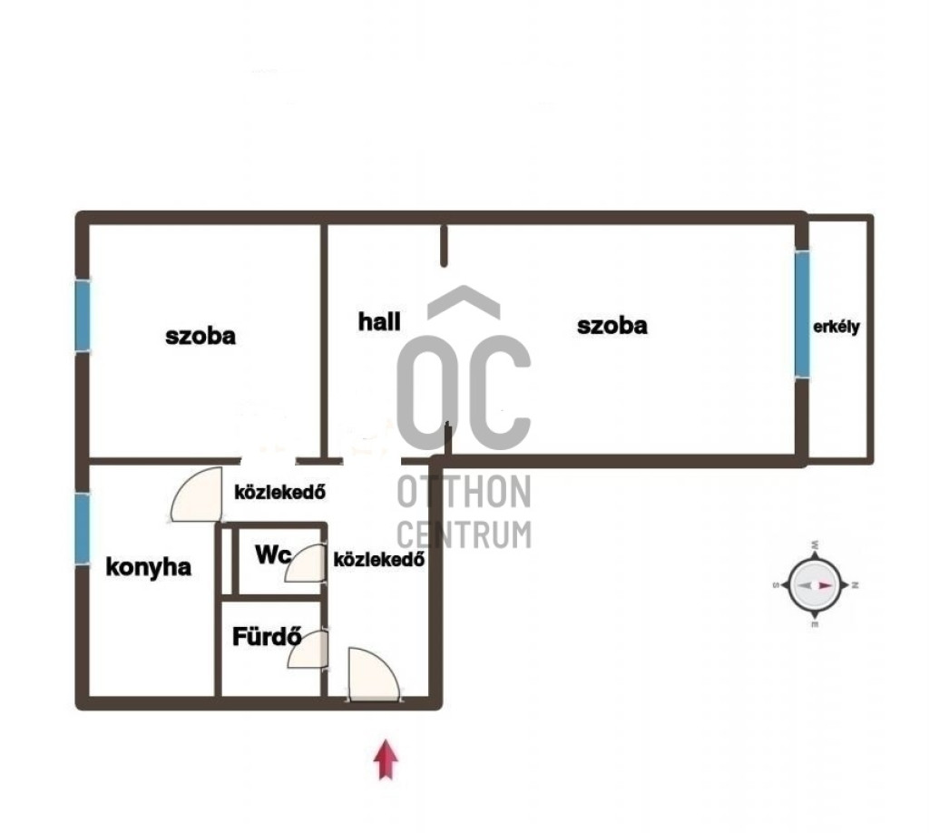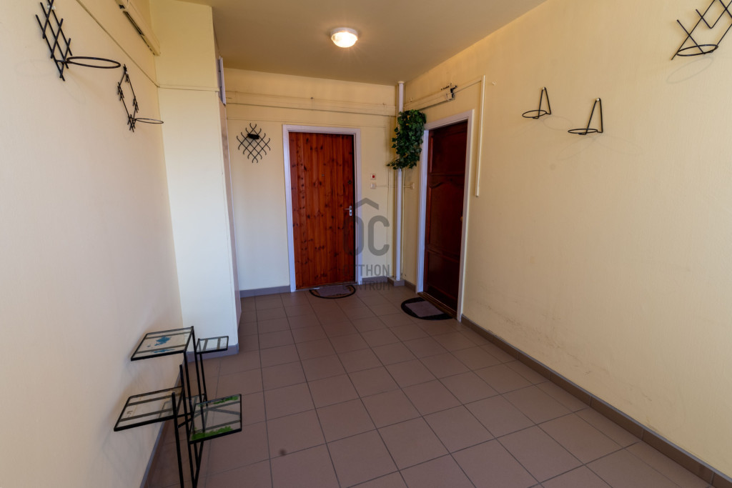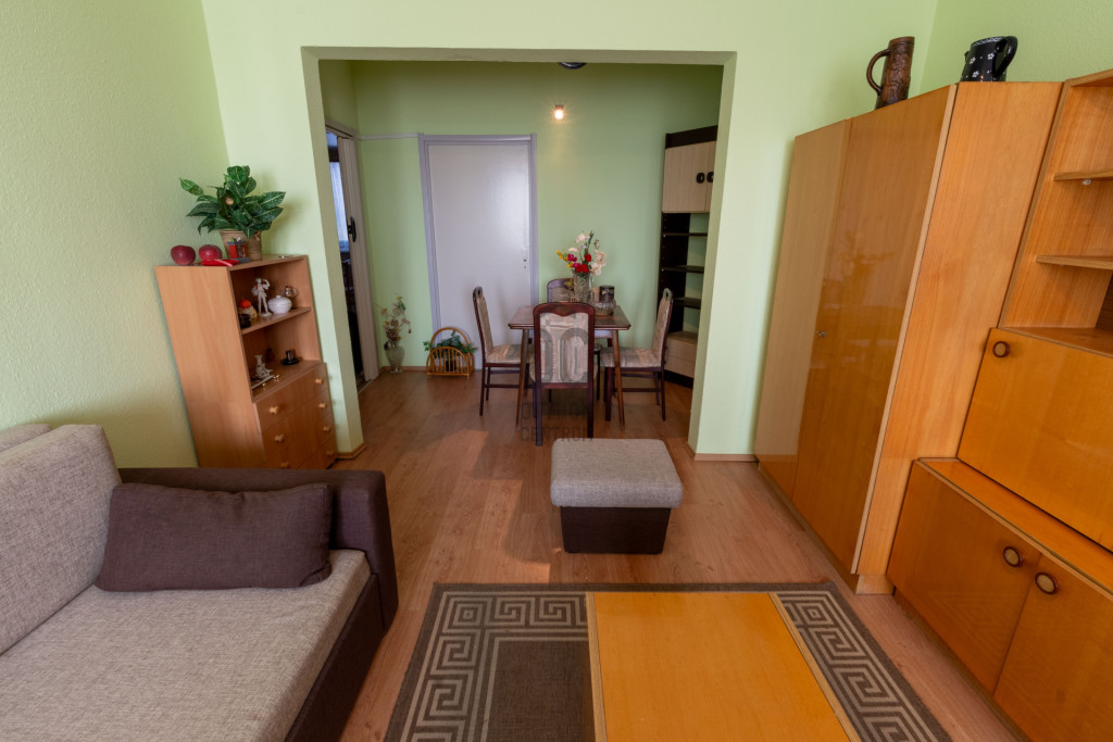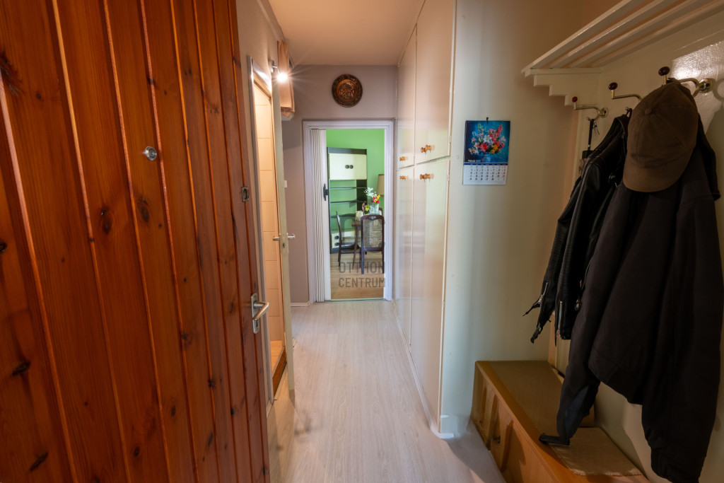A lakásnak kiváló elosztása van, két külön nyíló világos szobát, valamint egy tágas hallt foglal magában, mely akár étkezőnek is alkalmas lehet.