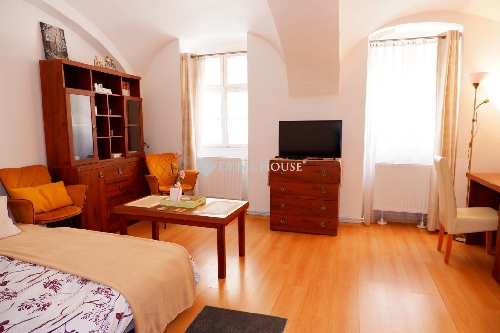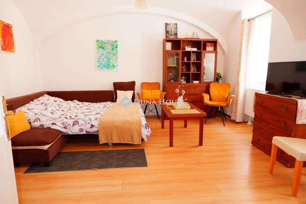 Íme a befektetők álma! A történelmi belvárosban eladóvá vált egy felújított, teljesen berendezett, 31 m2-es, cirkó fűtéses, földszinti lakás. A környezete idilli, gondozott, zöld udvaron levegőzhet az itt lakó. A városi rendezvények, éttermek, boltok karnyújtásnyira találhatók, viszont a lakásba már nem szűrődik be a Fő utca zaja. Tárolásra nagy segítség a külön nyíló, kb. 2 m2-es kamra. Autóval parkolhat a ház előtt. A lakás alkalmas airbnb kiadásra, jelenleg is sikeresen így működik. Az ár tartalmazza a teljes berendezést is.