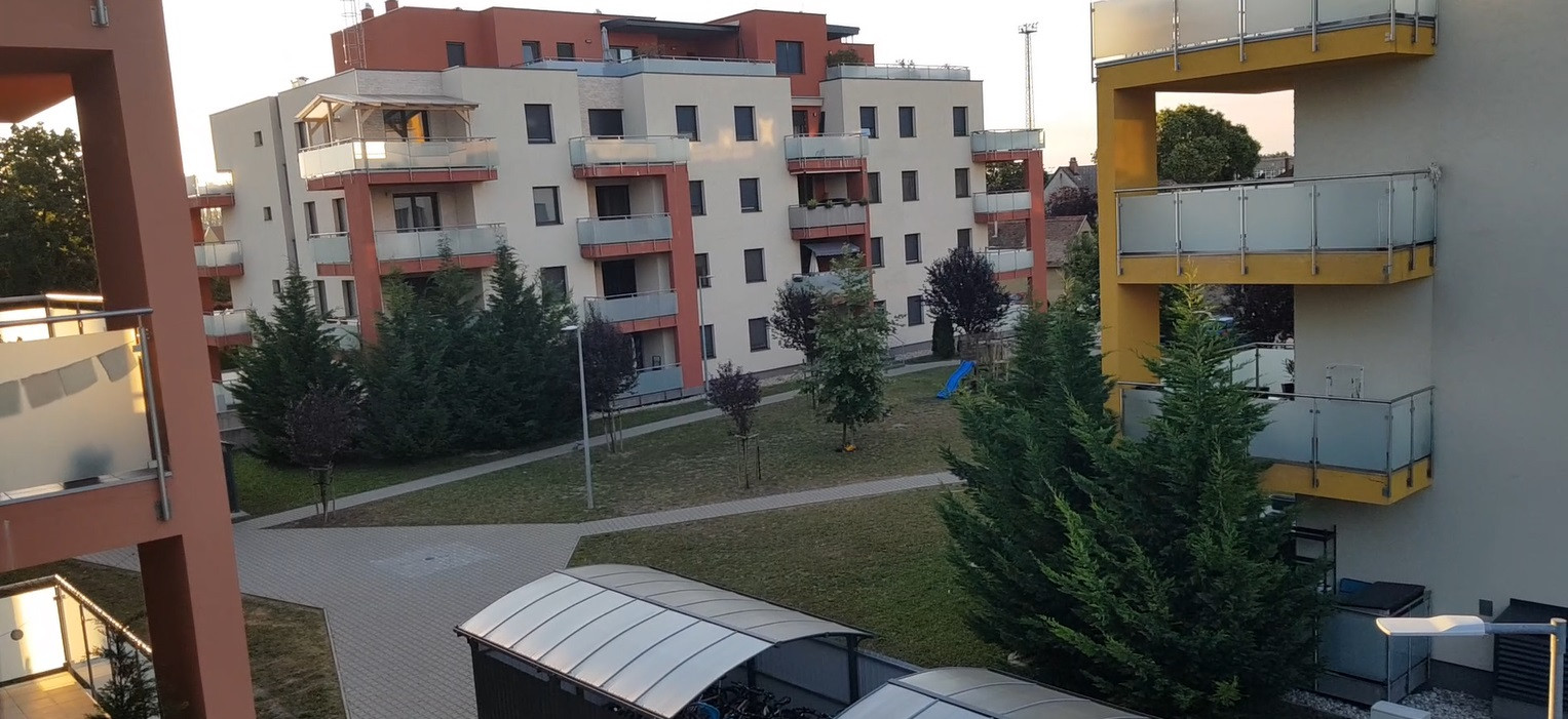 A környék kiváló infrastruktúrával rendelkezik: a közelben bevásárlási lehetőségek, óvoda, iskola, gyógyszertár és egyéb szolgáltatások is megtalálhatók. A belváros gyorsan elérhető, a közlekedés jól megoldott, ugyanakkor a lakópark csendes, rendezett környezetet kínál. A zöldfelületek és sétára alkalmas területek családosoknak és aktív életmódot kedvelőknek is ideális választássá teszik ezt az otthont.