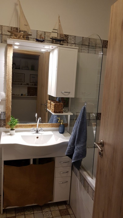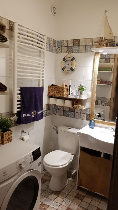 A fürdőszobában kényelmes kád, kézmosó, wc és törölközőszárító kapott helyet, emellett külön vendég wc is rendelkezésre áll.