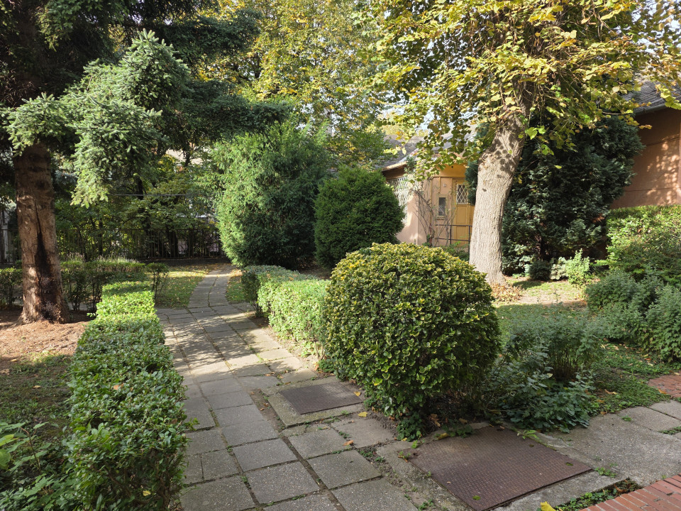 A kertből két irányba is kijárat nyílik: a Jókai utca, illetve a Mátyás király körút felé — páratlan adottság a belvárosban!