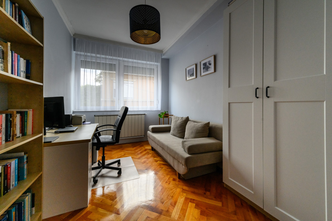 A lakás helyiségei: tágas nappali + 3 külön nyíló szoba, fürdőszoba, külön WC, konyha és előszoba. A 3 szintes épületben szintenként mindössze két lakás található, így csendes, nyugodt környezet és jó szomszédi viszony jellemzi.