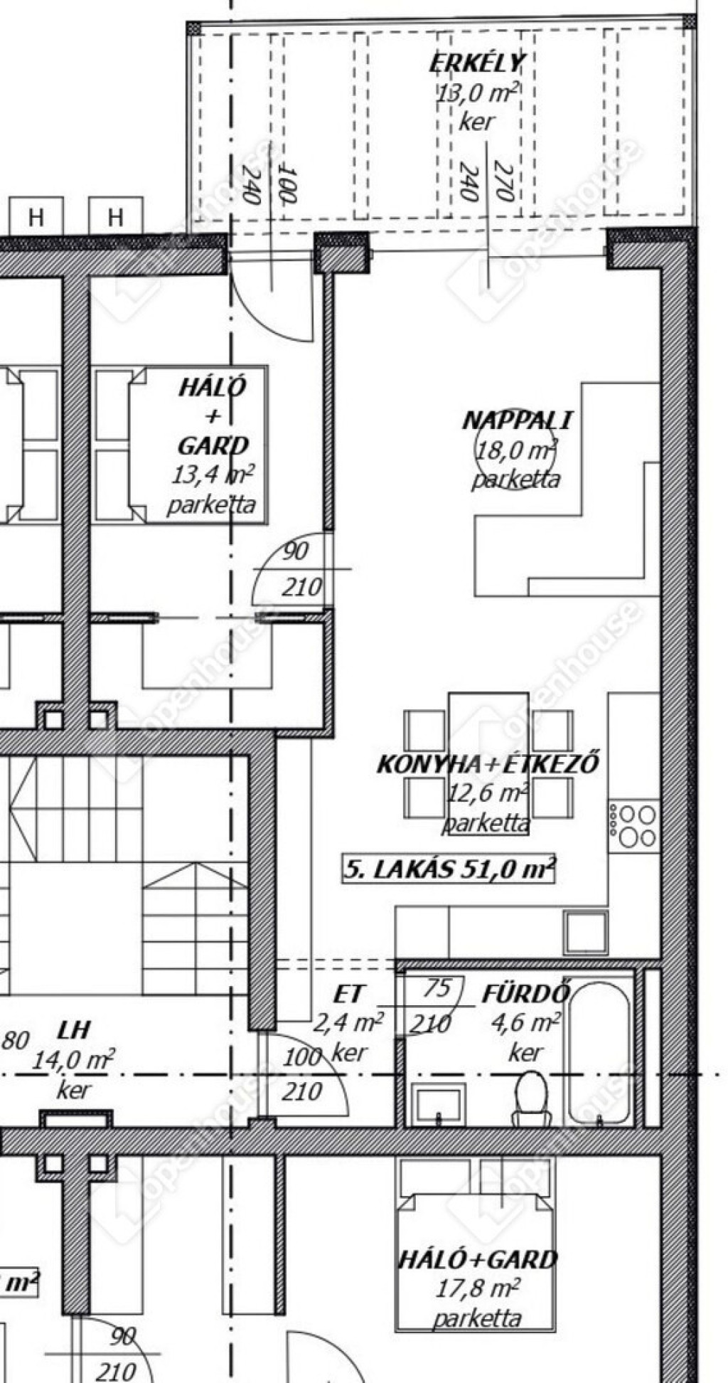 tágas, 13 m²-es erkély minőségi kerámia burkolattal
