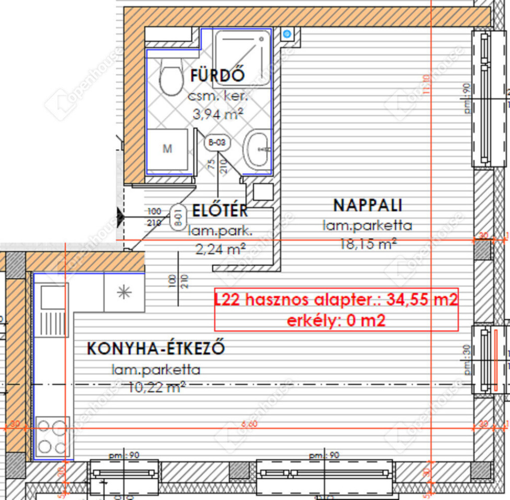 nettó 34,55 m2-es lakás