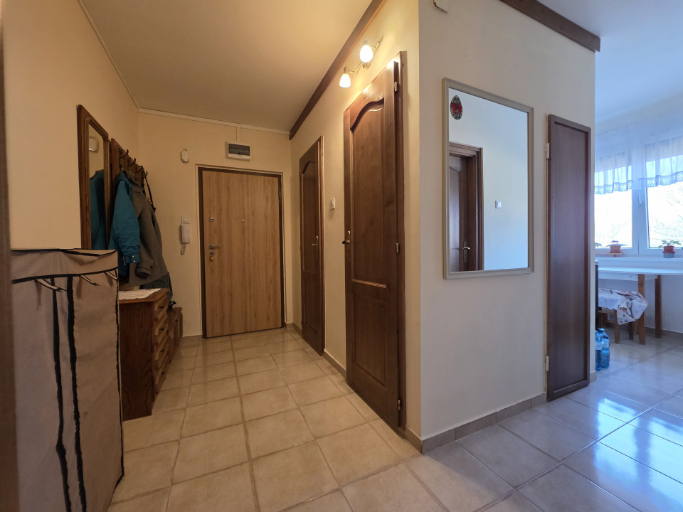Az előszoba, konyha, fürdőszoba és WC minőségi, magasfényű, antikolt mintázatú fali csempével és járólappal burkolt. A fürdőszobában beépített Roth zuhanykabin található. Az ingatlanban új radiátorok vannak egyedi mérőkkel felszerelve.