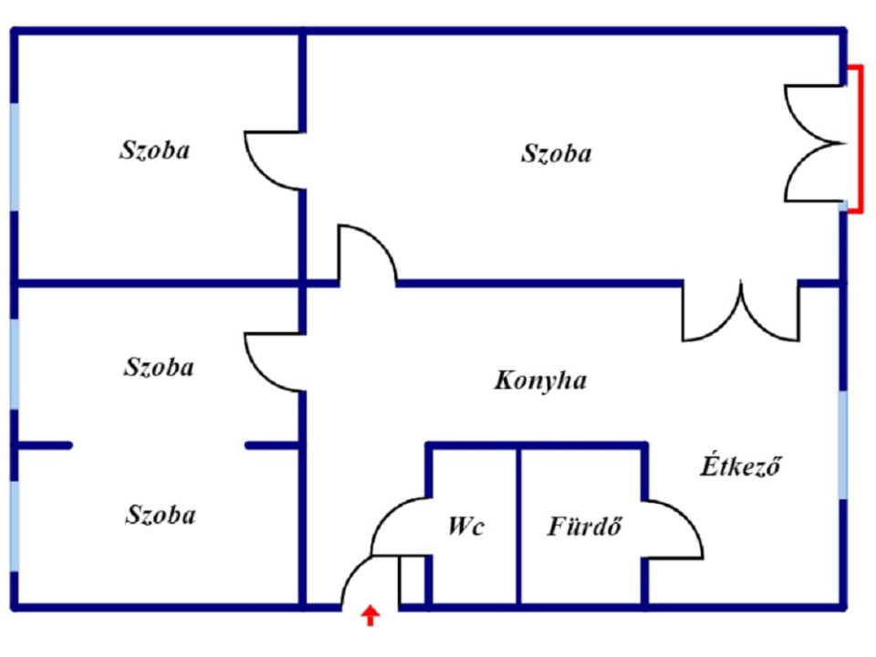 A lakás elosztása kiváló, tágas nappali, konyha - étkező, fürdőszoba és három hálószoba elosztású, a konyha és a fürdőszoba igény szerint felújításra szorul.