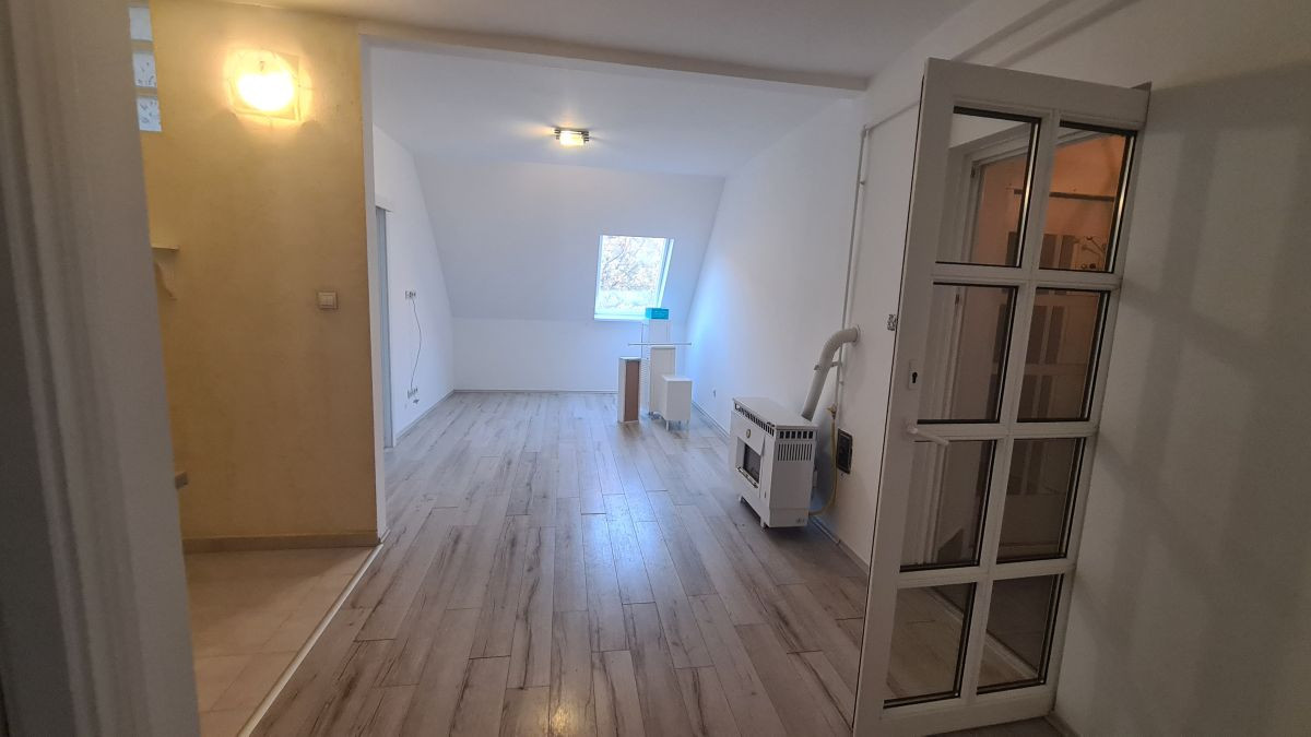 A 2 szintes épület második emeletén található 62nm-es (bruttó 70nm) ingatlan kellemes hangulatú, egyedi kialakítású. Az elosztása a következő: az előszobából az étkező-konyha-nappali légtérbe lépünk, melyből 2 hálószoba és a fürdőszoba nyílik.