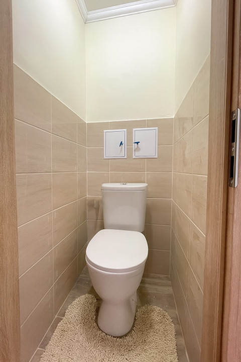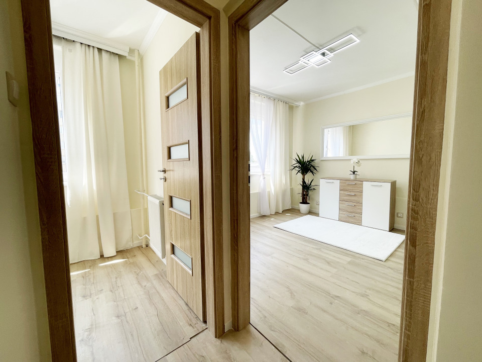 A felújítás minden részletre kiterjedt: a villanyhálózat teljes cseréje megtörtént, és 32 amperre bővítették a kapacitást; továbbá a vízvezetékek is megújultak. A lakás elrendezése praktikus: külön mellékhelyiség, valamint kádas fürdőszoba szolgálja a kényelmet.