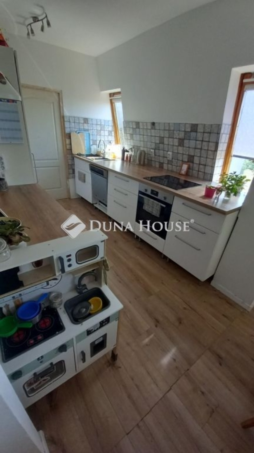 IGAZI RITKASÁG A BELVÁROSBAN, TÁGAS, 5 SZOBÁS, TETŐTÉRI LAKÁS SZÉKESFEHÉRVÁRON! Székesfehérváron, a Lövölde utcában tulajdonostól eladó egy nettó 83 m² (bruttó 110 m²) alapterületű, 5 szobás, egyedi kombicirkós, tetőtéri lakás, kulturált, rendezett társasházban. A LAKÁS: A lakás azonnal költözhető, felújított, igényes állapotú. Parkettázott helyiségek, új IKEA konyhabútor, modern szaniterek és két fürdőszoba várja új tulajdonosát. Főbb jellemzők:biztonsági bejárati ajtóVELUX fa és műanyag, 3 rétegű hő és hangszigetelt tetőablakok, belső parkra néző kilátássalegyedi VAILLANT kombi cirkó fűtés és melegvíztetőn elhelyezett hőszivattyú külső egység. Elrendezés:Belépve egy praktikus, tágas előszoba fogad, rengeteg tárolási lehetőséggel. Innen nyílik a 30 m²-es, D-DK fekvésű nappali-étkező, amely ideális családi és baráti együttlétekhez.A vadonatúj konyha teljesen gépesített:BOSCH légkeveréses sütőWHIRLPOOL indukciós főzőlapbeépített IKEA hűtőAz alsó szinten található egy zuhanyzós fürdő WC-vel, valamint egy dolgozószoba, amely akár külön szobaként is használható.A felső szinten:3 külön nyíló hálószobanagy, világos sarokkádas fürdőszobaFENNTARTÁSI KÖLTSÉGEK:Korszerű technológiának köszönhetően rendkívül alacsony rezsi:közös költség: 13.000 Ft/hótéli fűtés: max. 18.000 Ft/hóminden fogyasztás egyedi mérés alapján. A HÁZ:Az 5 emeletes társasház:tiszta, karbantartott lépcsőházmágneses beléptető rendszer és kamerarendszer. A KÖRNYÉK:Kiváló infrastruktúra, minden pár perc sétára: 2 perc: Interspar, DM, OBI, OMV (éjjel-nappali)5 perc: óvoda, bölcsőde, iskola, magánrendelő10 perc: Halesz park (futópálya, kondipark, játszótér)15 perc: Várnegyed, sétálóutca, éttermek, kávézók. KÖZLEKEDÉS: vasútállomás 10 perc séta. Budapest (Déli, Kelenföld) kb. 40 percVelencei-tó és Balaton gyorsan elérhető. A vételár részét képezi a beépített konyhabútor és a teljes gépesítés (páraelszívó, sütő, főzőlap, hűtő).